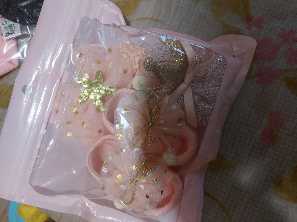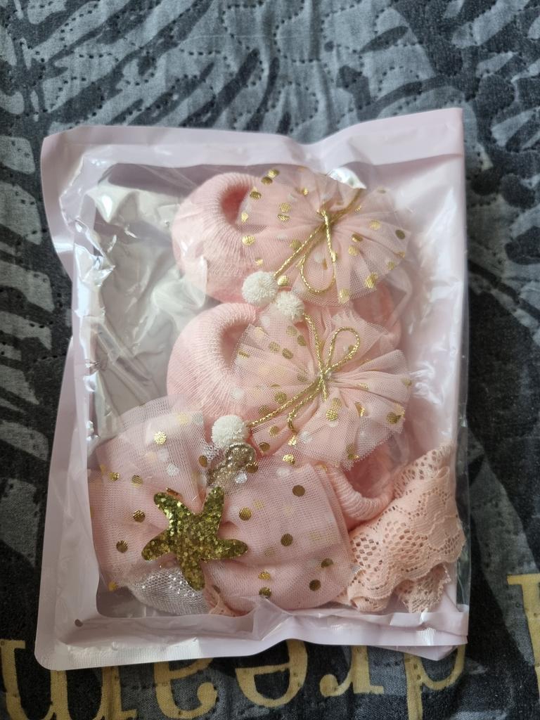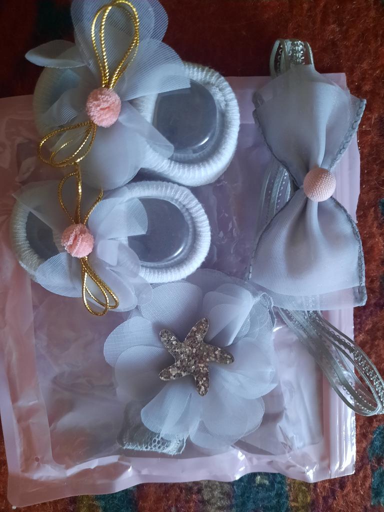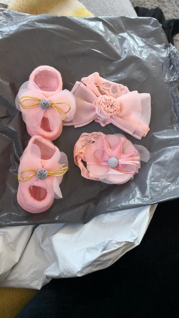 Opožděně. Nepříliš kvalitní jedna z čelenek, punčochy neestetického vzhledu. Dokud punčochy nedorazily, jsou mé holčičce malé, ale nebudu jí je moci dát, nevypadají dobře.