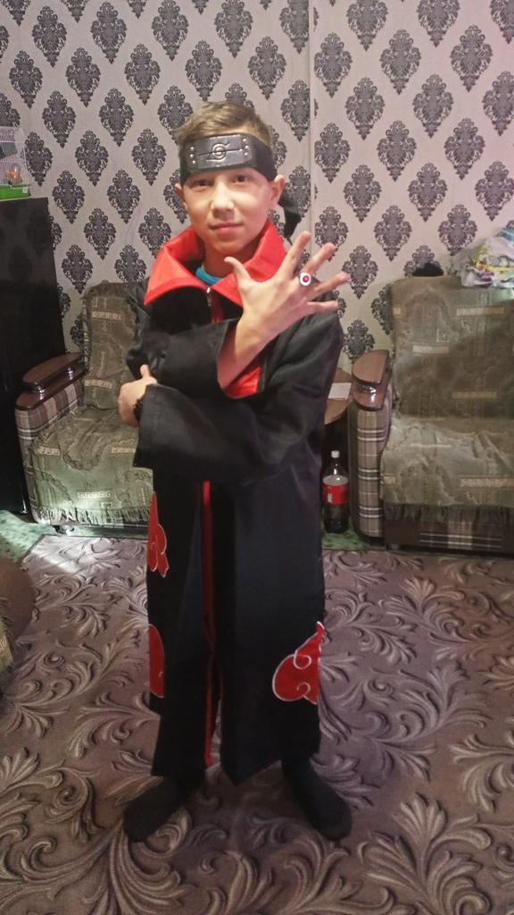 Anime NARUTO Akatsuki Uchiha Itachi Cosplay Kostým Plášť Župan Ninja Trench Coat Set Ring Čelenka Halloween