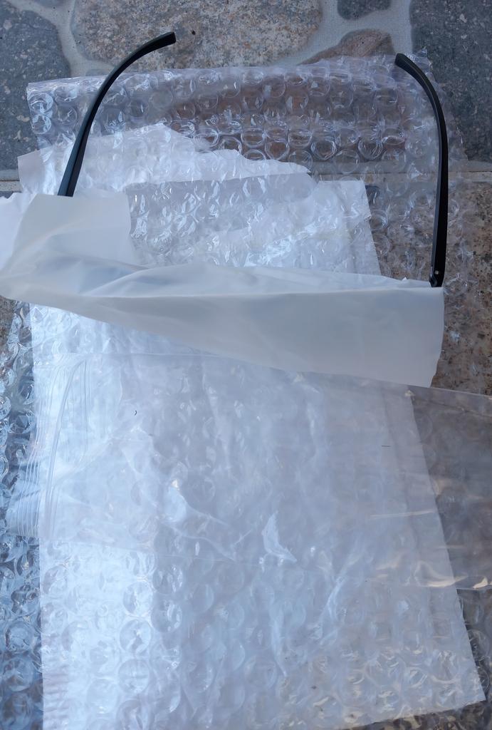 Brýle nebyly dobře zabalené, jen v igelitu. Takhle se nosit nedá, je dokořán a šikmo.