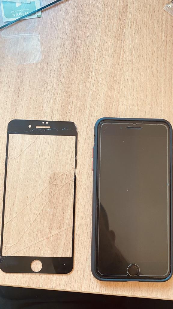 Objednal jsem manželce za 7plus Dříve jsem objednával na Ukrajině, přinesli ochranné sklo, které se hodí do rohů (podívejte se na fotografii vlevo). Právě jsem si ho objednal, ale doručili skoro špatný. Nepasuje úplně na obrazovku. Je to škoda