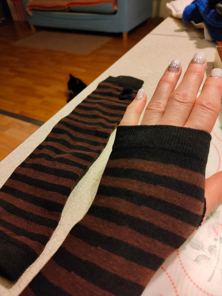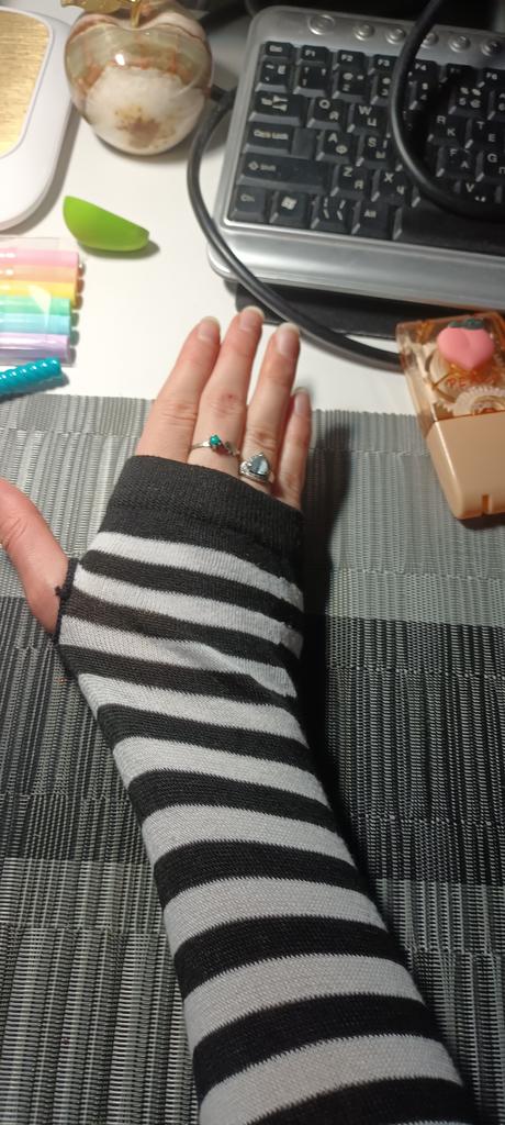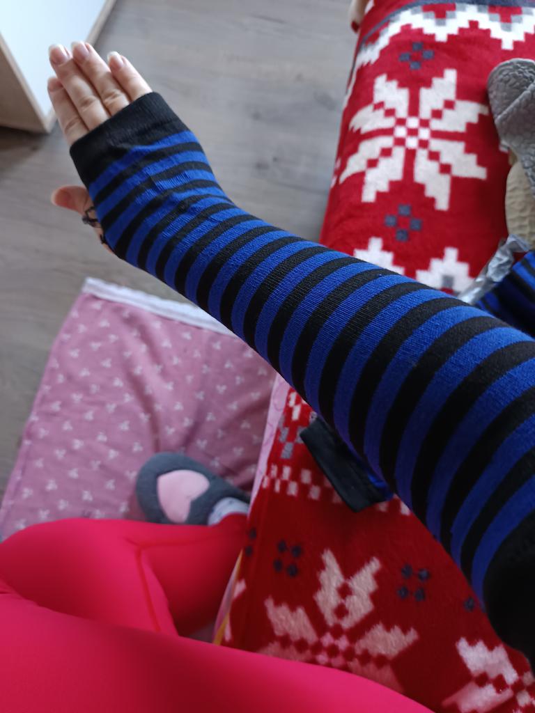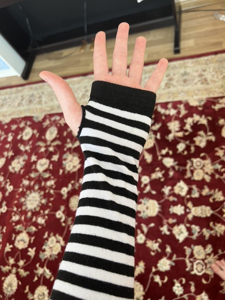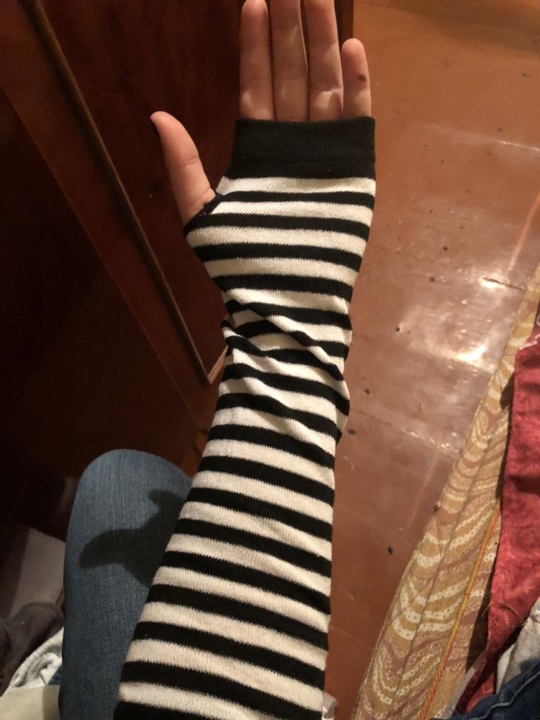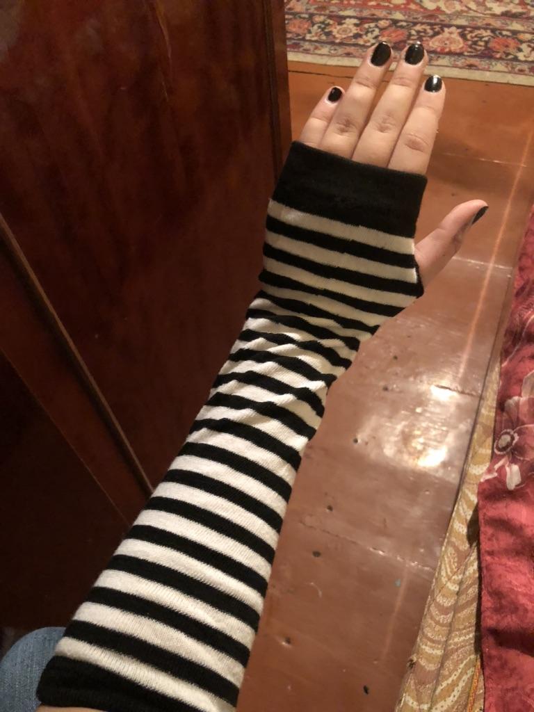 Velmi pohodlné pro 3/4 rukávy. Nosila jsem to s černým tričkem a vypadalo to jako prodloužení 3/4 rukávu a drželo ruce v teple.