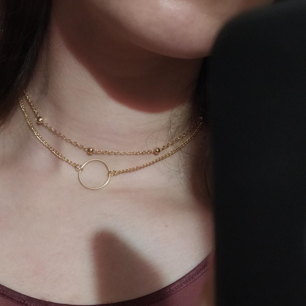Moderní obojkový náhrdelník dámské Dvouvrstvé kulaté náhrdelníky Náhrdelník zlaté barvy Módní šperky