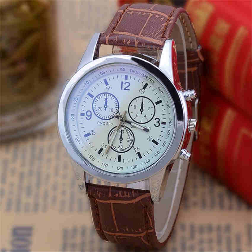 Fashion Unisex Watch Blue Glass Three Eye Leathe Band Quartz Sport Watch Business Watches