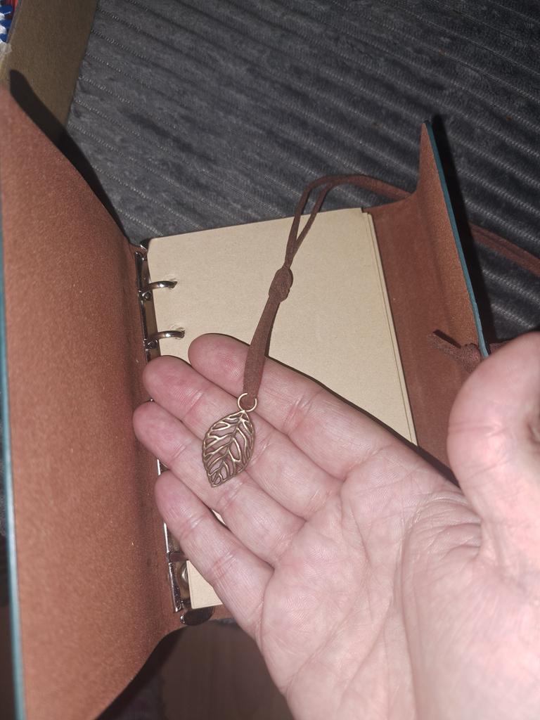 Vintage listový přívěsek na notebook pořadač z umělé kůže