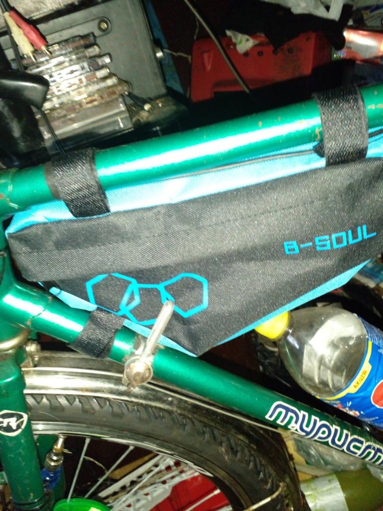 Taška se třemi páskami na suchý zip pro připevnění k rámu kola, materiál tenký a nepevný pro uložení něčeho ne těžkého... Zámek je normální