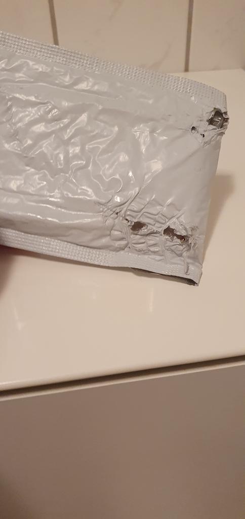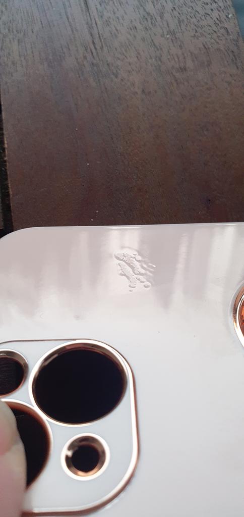 Rozbitý obal, vada materiálu na zadní straně. Škoda.
