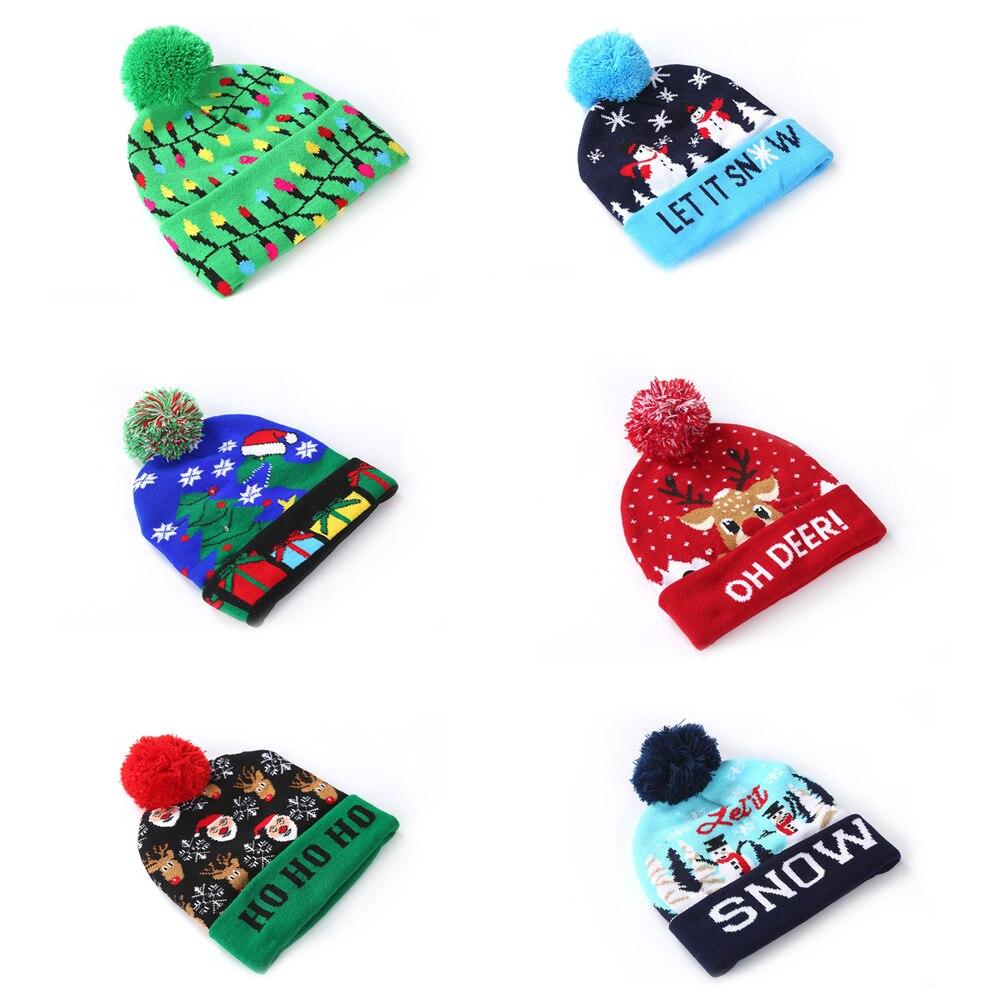 Christmas Lighted Knit Cap Flange Ball Knit Cap LED Colorful Cap Adult Child Hat Letter Pattern