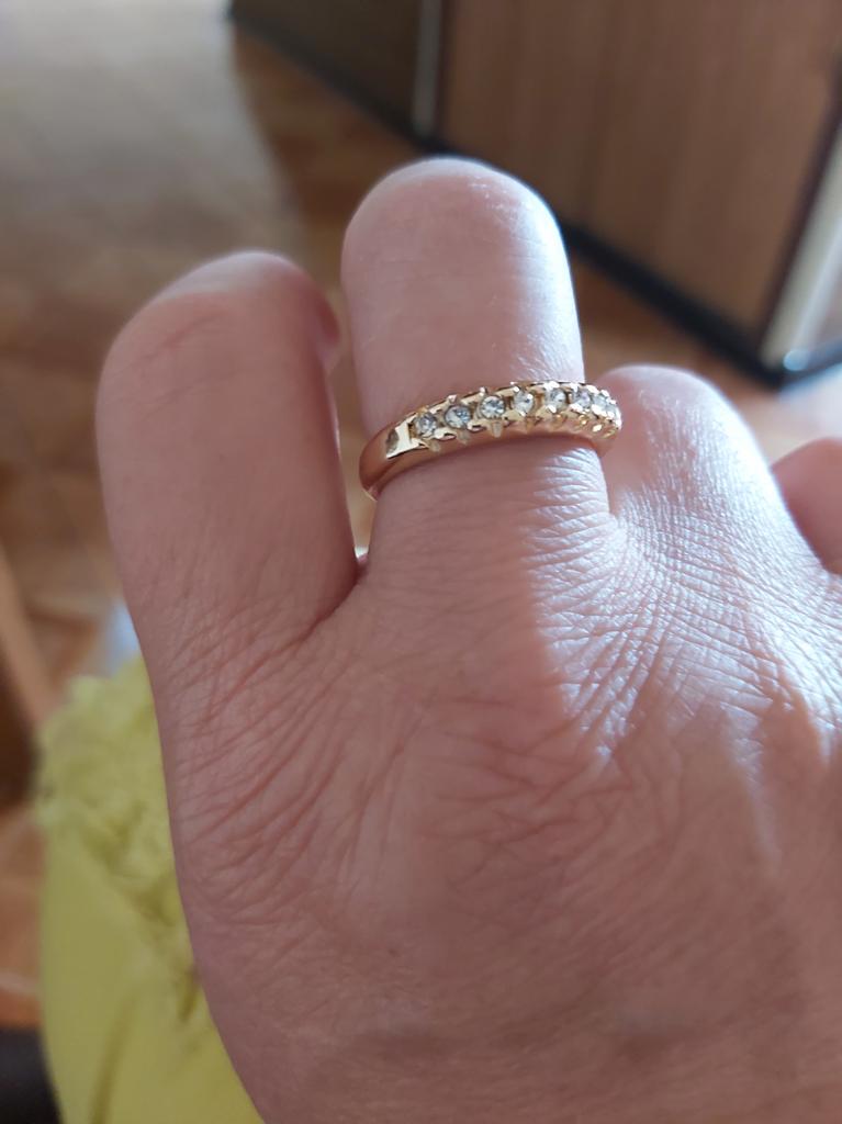 Prstýnek se mi moc líbil. Vypadá velmi podobně jako zlato. Nosila jsem ho málo. Zatím nemám žádné výhrady.