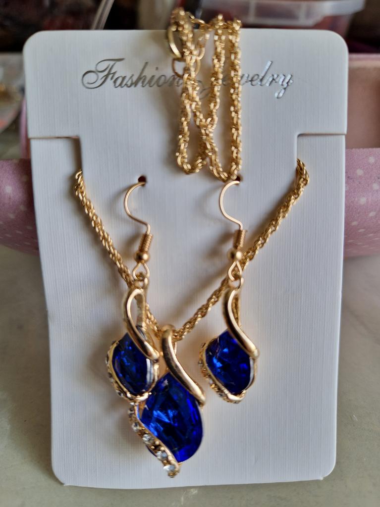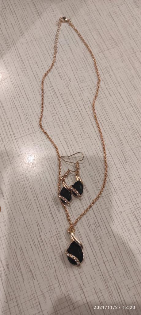 Elegantní dámský řetízkový náhrdelník s drahokamenovým obojkem, náušnice, sada šperků