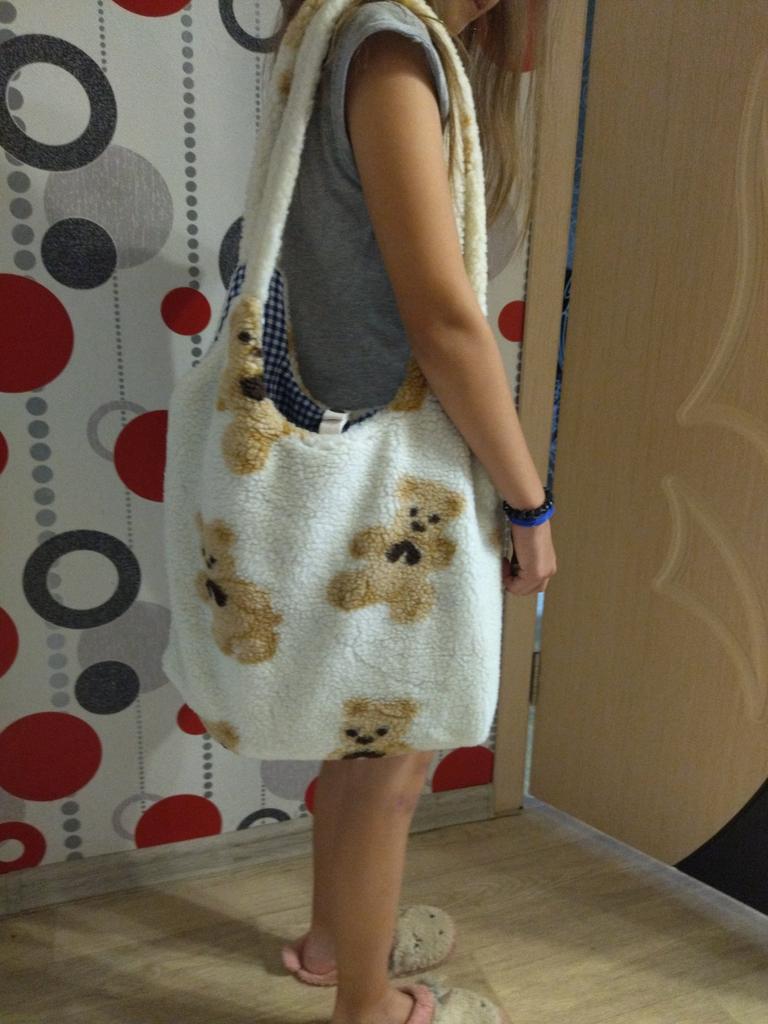 Cool shopper, tááák prostorný, z umělé kožešiny, složka A4 stojí svisle a nahoře je ještě místo, a když to dáte naležato, přijdou jak učebnice, tak posun. Dcera je nadšená! 🤩Šité pro 5 jakost.