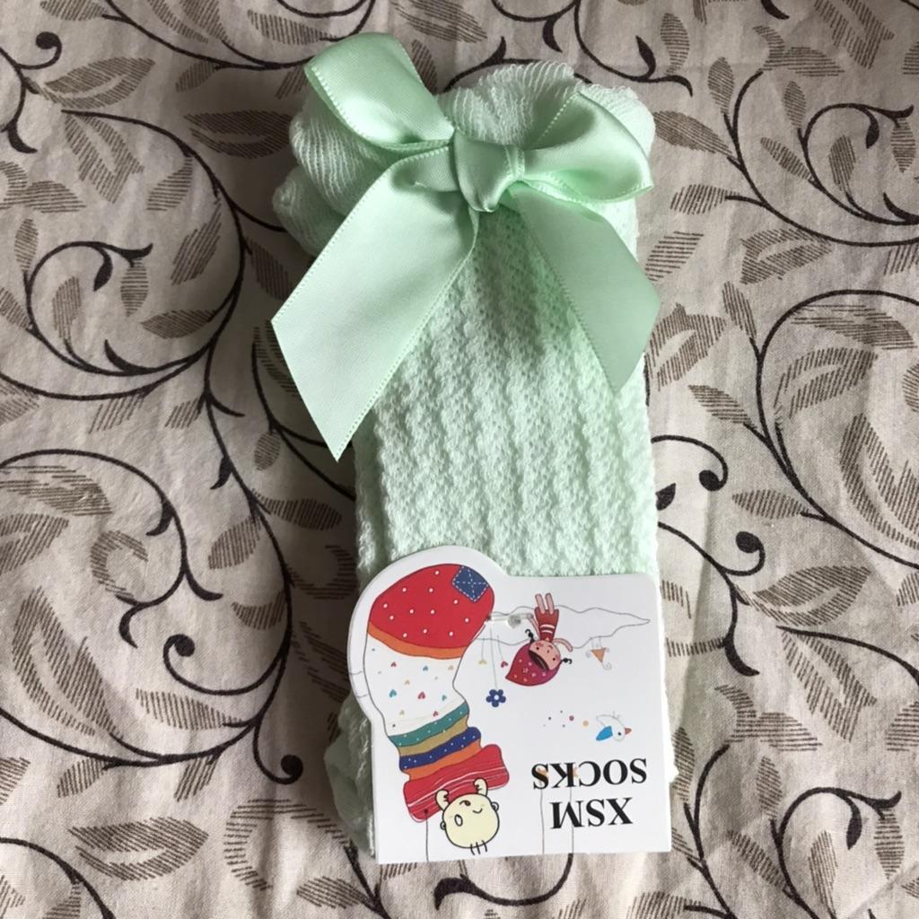 Princezna jednobarevné dívčí vysoké ponožky pod kolena dětské pohodlné prodyšné s mašličkou síťovina 0-3 roky pro batolata dlouhé punčochy
