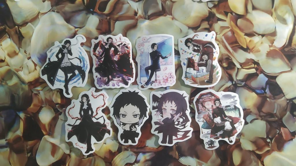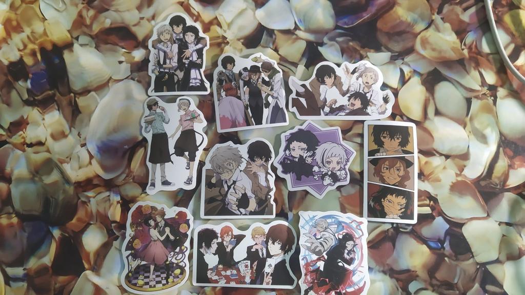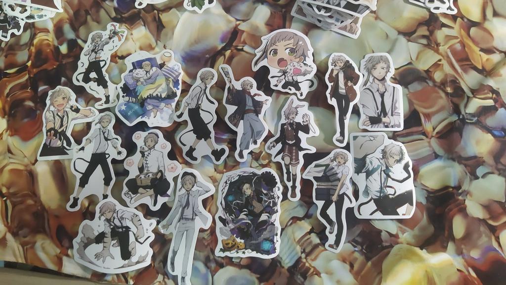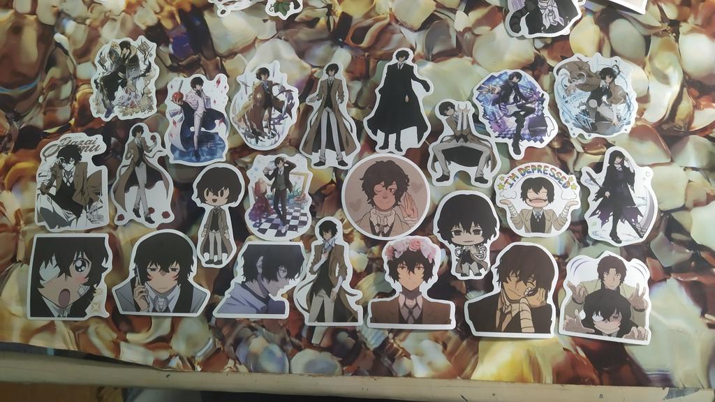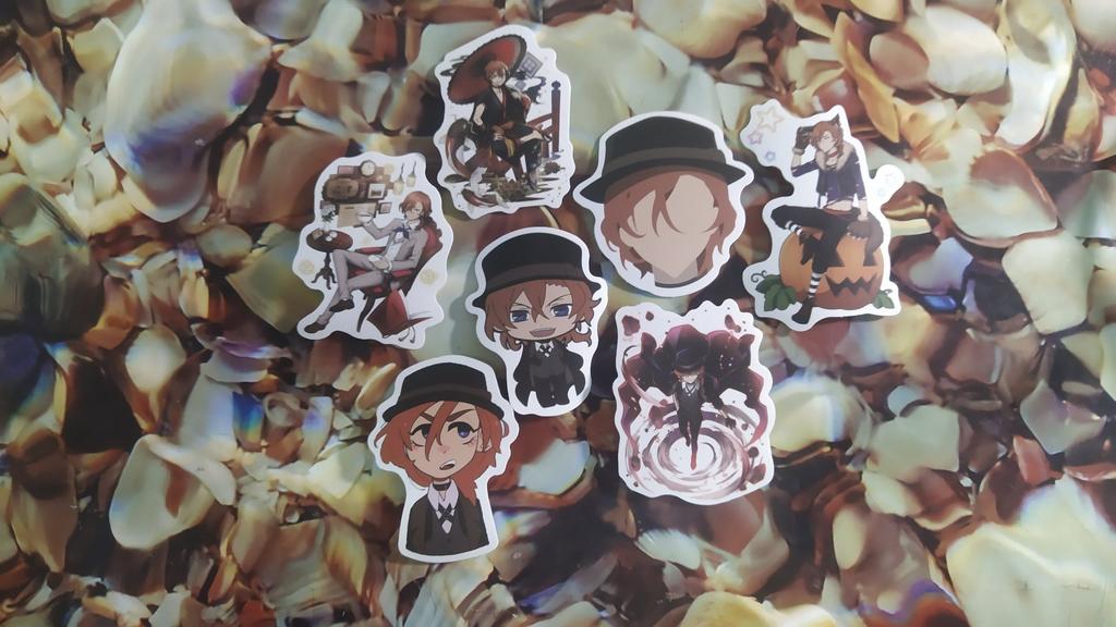 Moc pěkné samolepky moc se mi líbí děkuji prodejci😭❤️ je tam spousta samolepek s Dazai,, Atsushi a Akutagawa,, ale osobně s tím dokážu žít, protože všechny tyto postavy miluji a všechny jsou mé oblíbené, , mají tady i smradlavého Fjodora 🫶🏼 Dám si je na školní láhev s vodou ૮ ˶ᵔ ᵕ ᵔ˶ ა