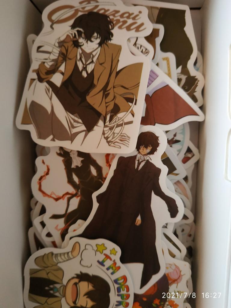 No, moc pěkné samolepky! Jsou voděodolné, lepidlo dobře drží, v sadě je přesně 100 kusů. Bohužel jsou trochu malé, ale velmi vzrušující! Prodejce doporučuji a myslím, že budu mučit znovu, protože materiál je velmi kvalitní, příjemný na dotek, chci poznamenat, že existuje mnoho samolepek s Dazai a Nakajima. Byly zabalené v jednom sáčku, hermeticky a s bublinkovou fólií. Hezký den všem z Chuyechka!