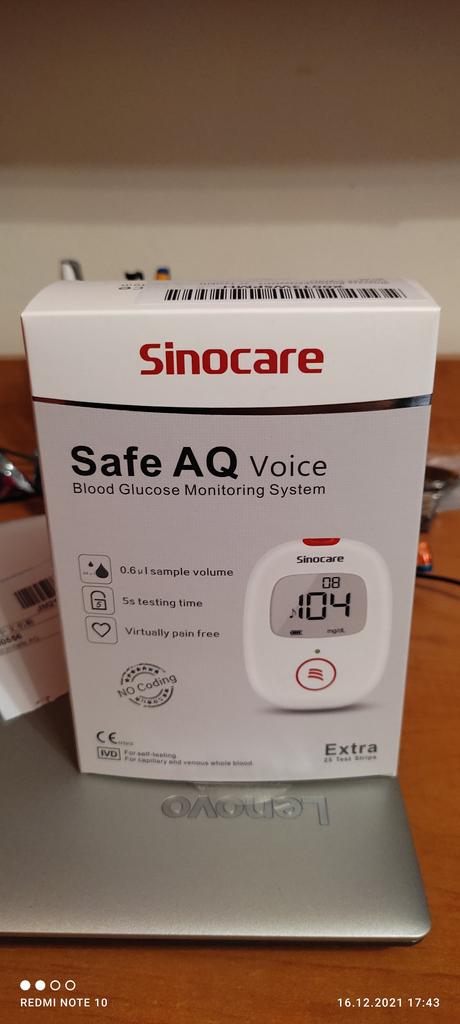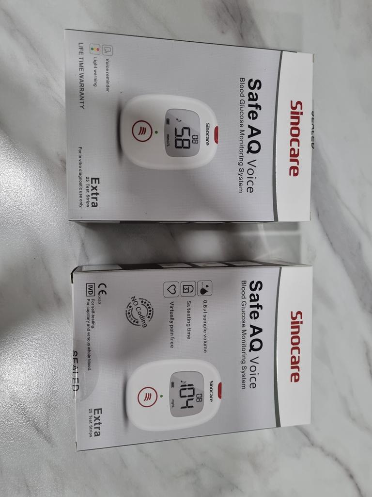 Sinocare Sada na testování diabetu Krevní glukózový test s 25 proužky bez kódu/lancetou Safe AQ Voice