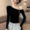 Dámské tričko s odhalenými rameny, sexy top s dlouhým rukávem, dámské dívčí topy, léto, dámské štíhlé oblečení