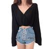Korejský sexy top s dlouhým rukávem sexy dámské tričko s výstřihem do V tričko s výstřihem do V Dámské topy Košile Bar Night Club Karnevalové tričko