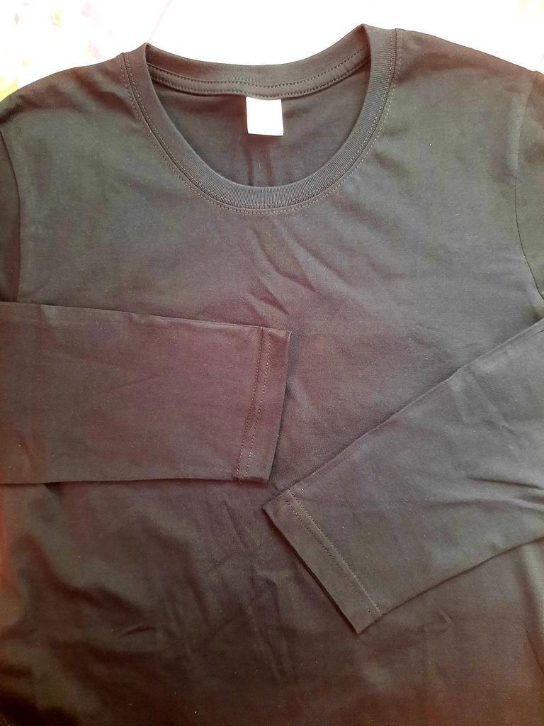 Kvalitní tričko s dlouhým rukávem, 100% bavlna, všechny švy jsou rovné, velikost odpovídá, moc děkuji.