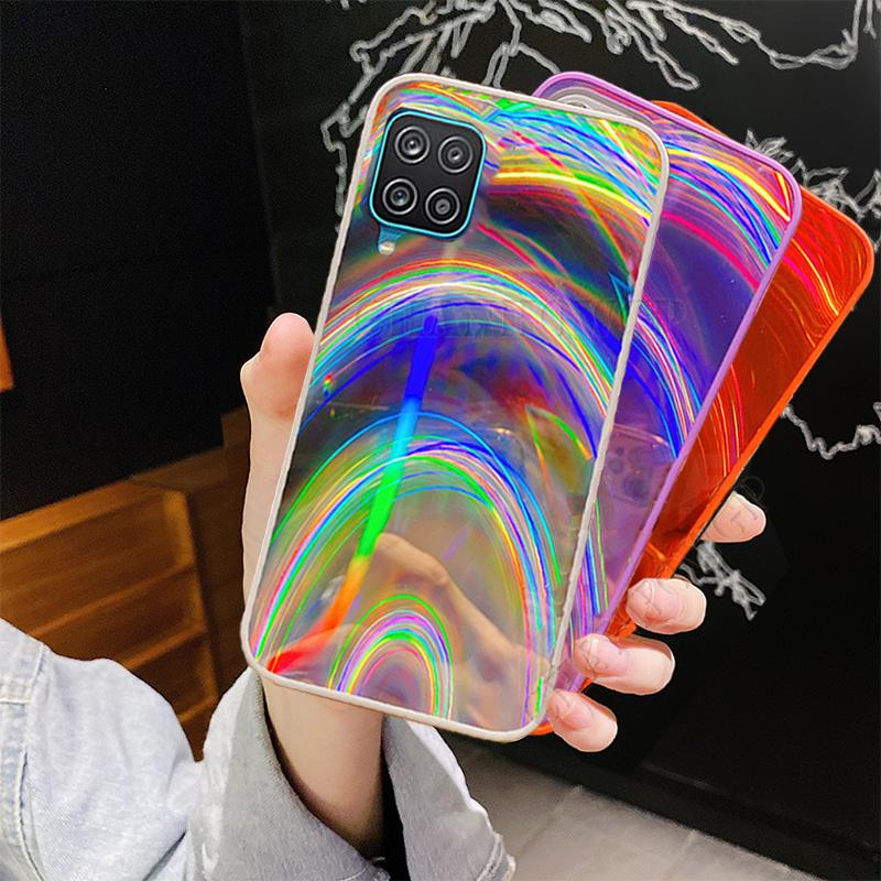 Duha Zrcátko Silikonový Okraj Pouzdro pro Samsung Galaxy A02S A12 A32 A42 A21S A51 A71 A01 A11 A31 A41 M31 S20 FE S21 S30 Plus Note20 Ultra Měkký Zadní Kryt