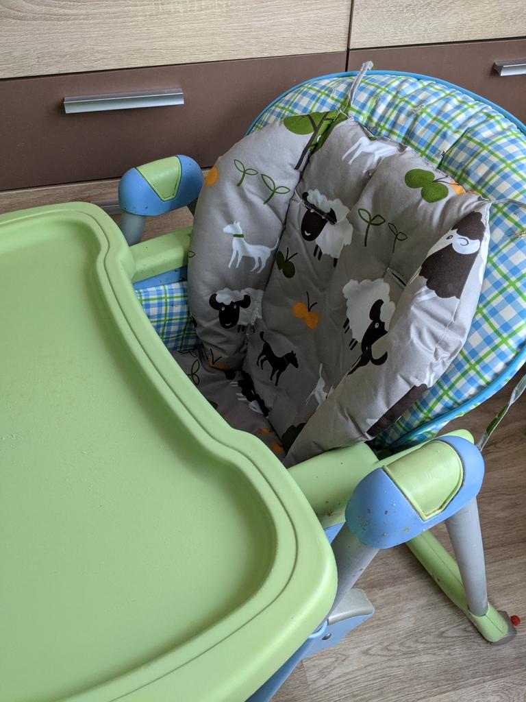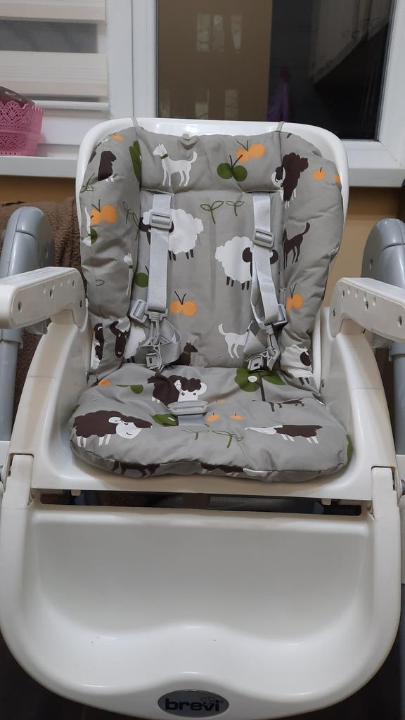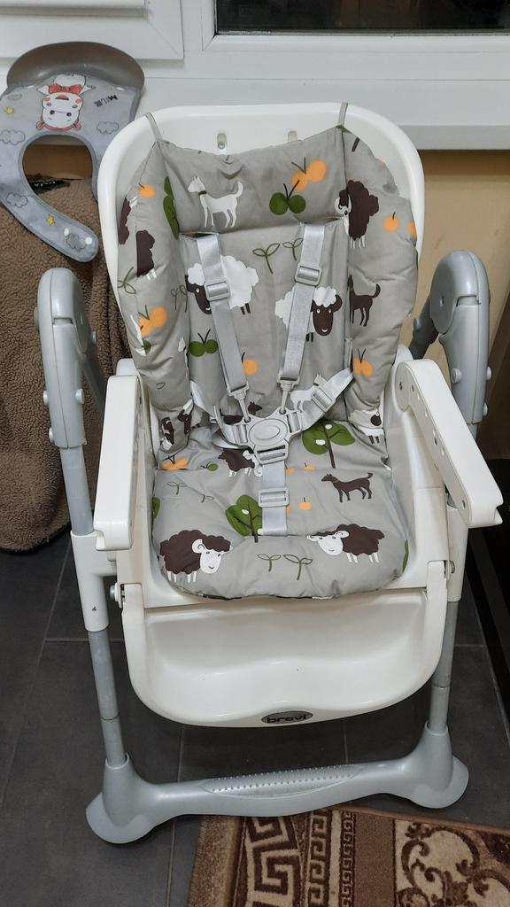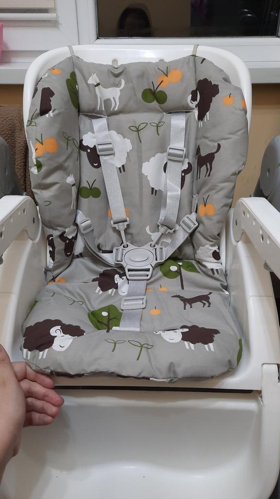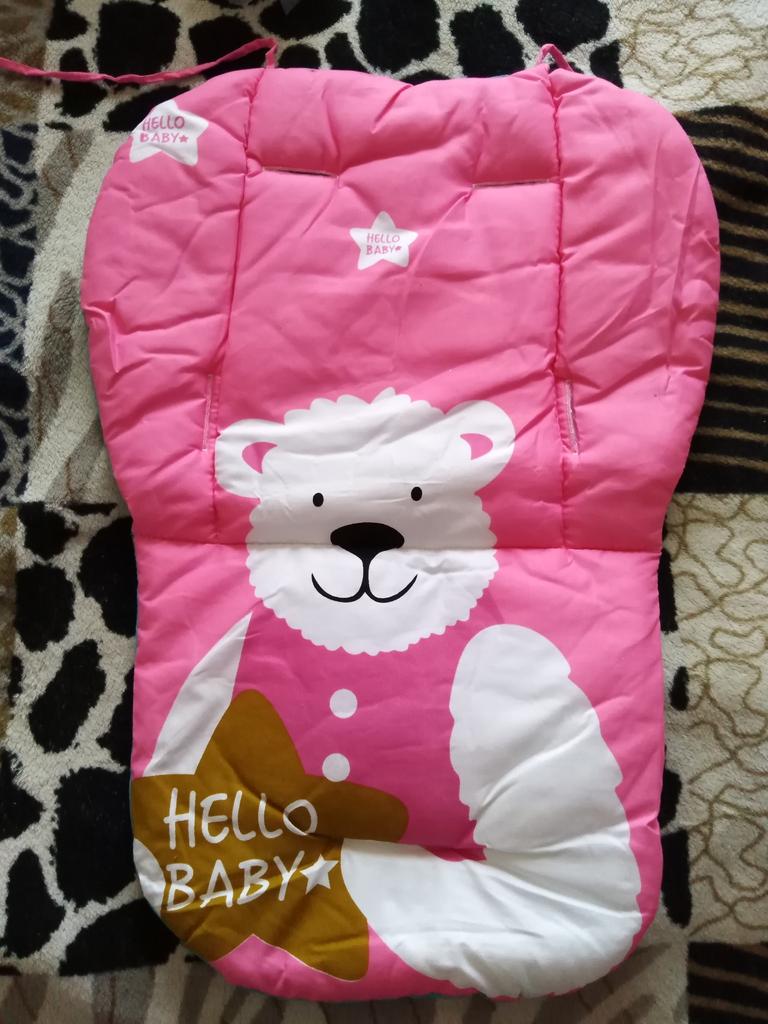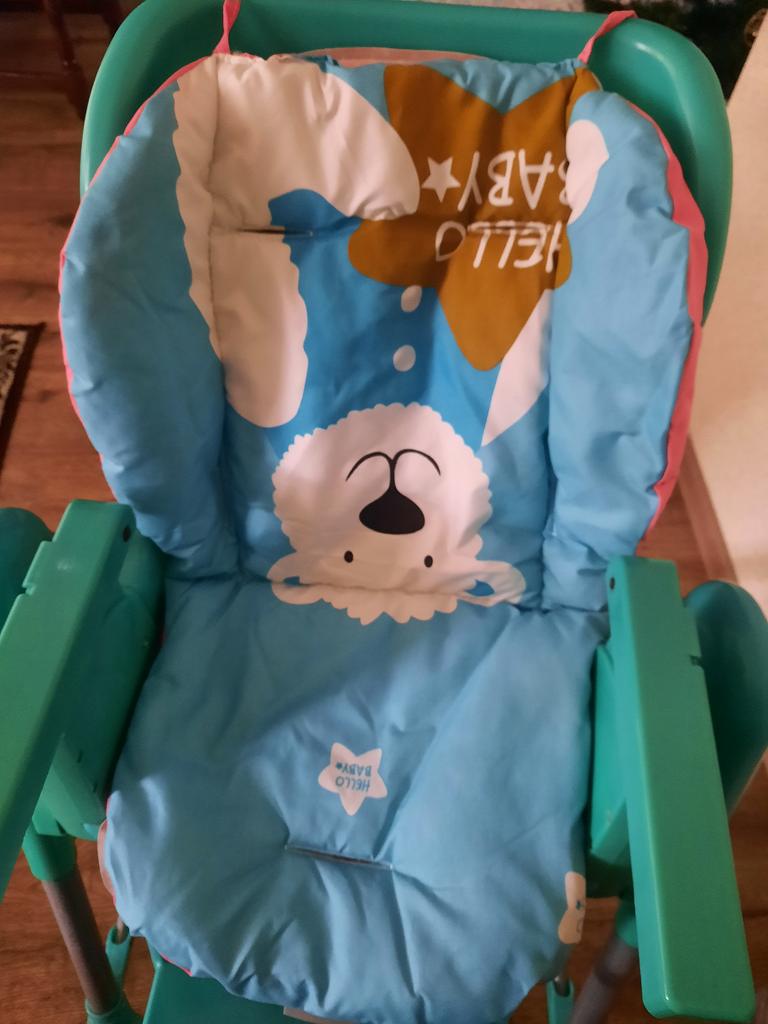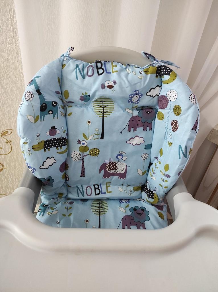 Velmi pěkný polštář na vysokou židličku. Ve velmi měkké látce je oboustranná růžová nebo modrá.