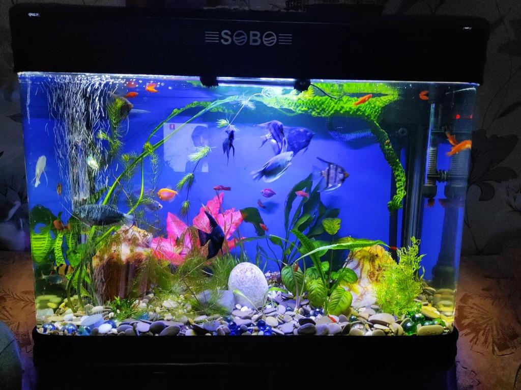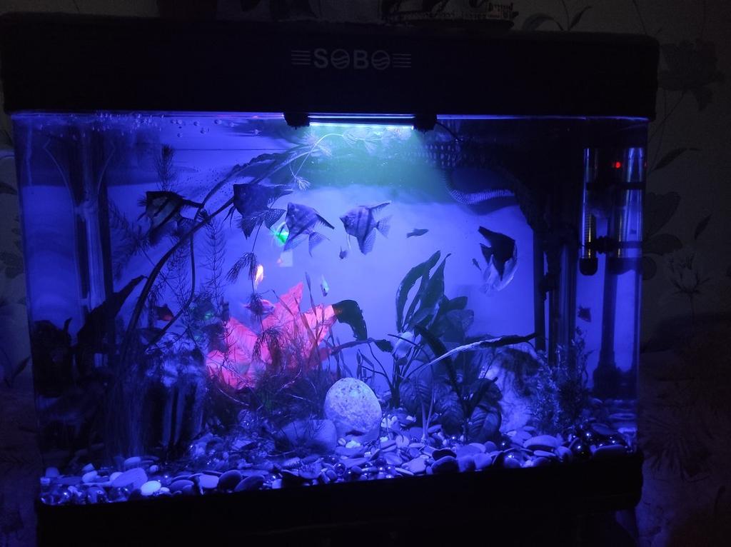 Modré světlo v akváriu je docela zvláštní. Raději jsem ho dal ven, někam za akvárium.