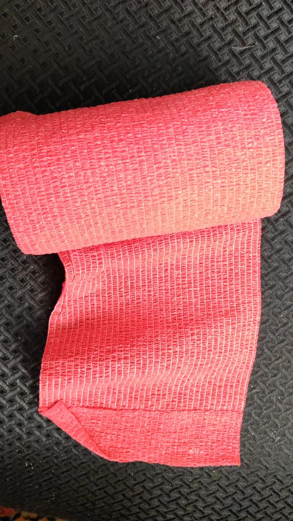 Sportovní páska, 1 ks Šířka pásku je přibližně 5 cm. Šířka přadena - 5 cm. Tloušťka navinuté pásky je 1 cm. Barva: khaki (tělová). Není možné zkontrolovat celou délku pásky, protože se pak musí zcela odvinout. Šířka a barva odpovídá mé objednávce. Páska je elastická (podobně jako gumička). Jedna strana (vnitřní) s lepicí vrstvou.