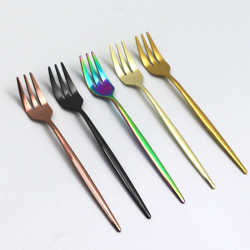 6Pcs Fruit Fork Stainless Steel Cake Forks White Gold Colourful Tea Fork Dinnerware Set Hotel Party Restaurant Supplies