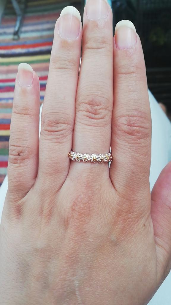 velmi jemný prsten, velmi krásný, ale srdce sedmikrásky je tak malé, že najednou nevidíme, že je zlaté, takže nemůžeme rozlišit vzor, musíte být blízko jako na fotce, vlastně na to všechno bez výčitek
