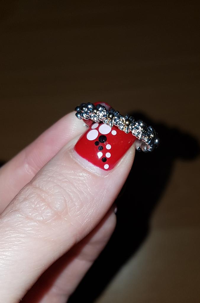 Vypadá hezky na prstech, velikost je nastavitelná Do balíčku dali i nálepku, což je fajn.