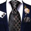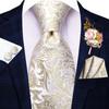 Hi-Tie hedvábná kravata Svatební oblek pro ženicha živě vázaná kravata Hanky manžetové knoflíčky na svatbu