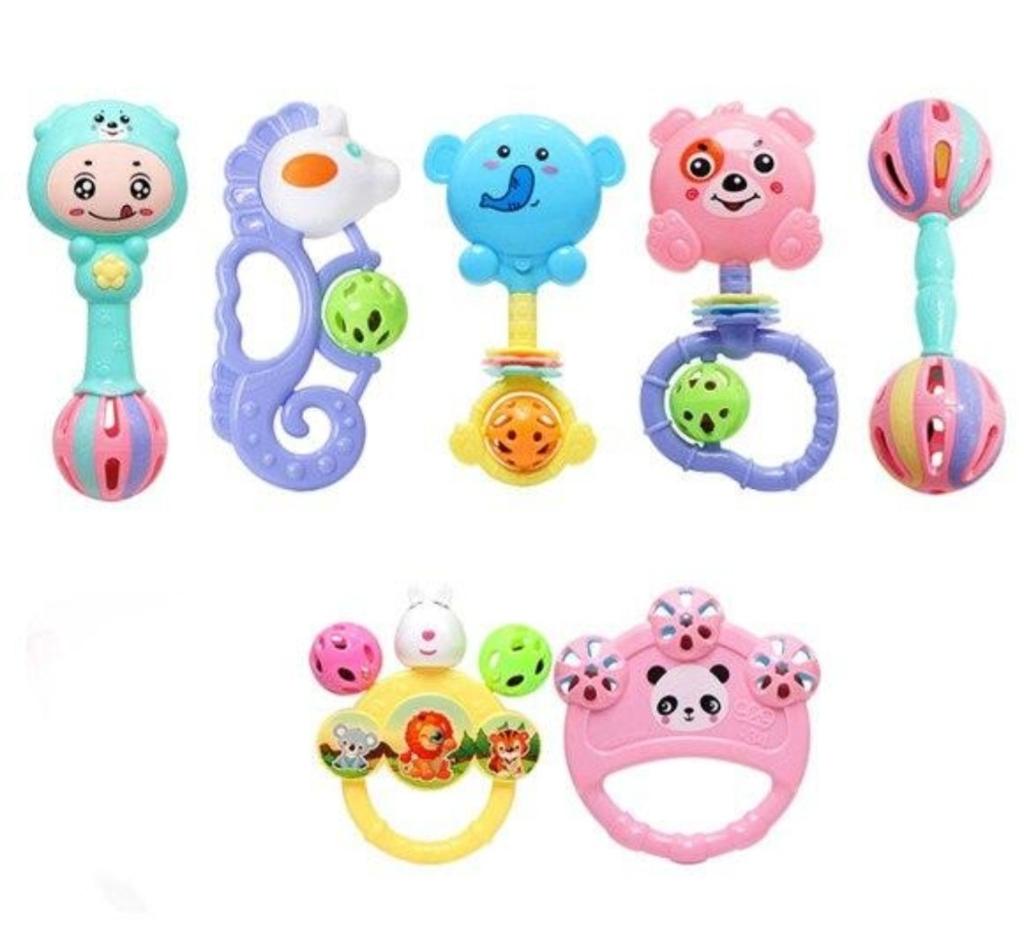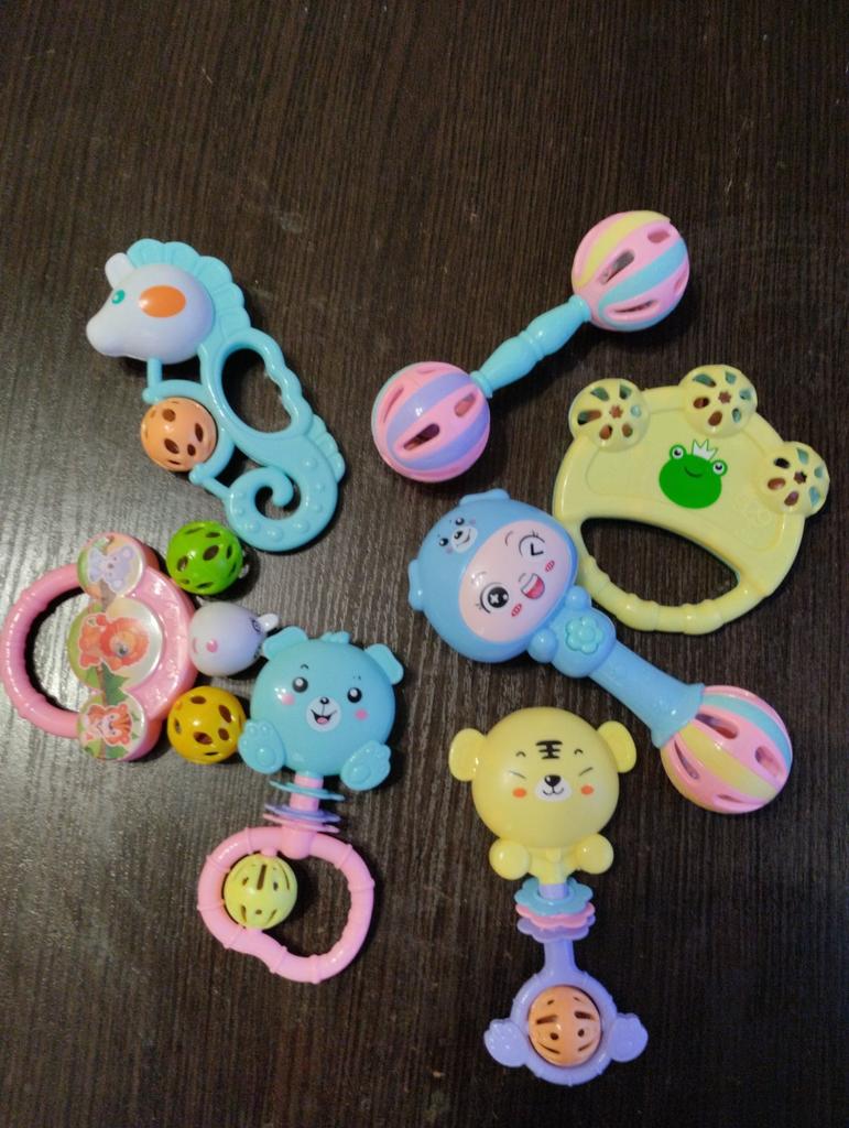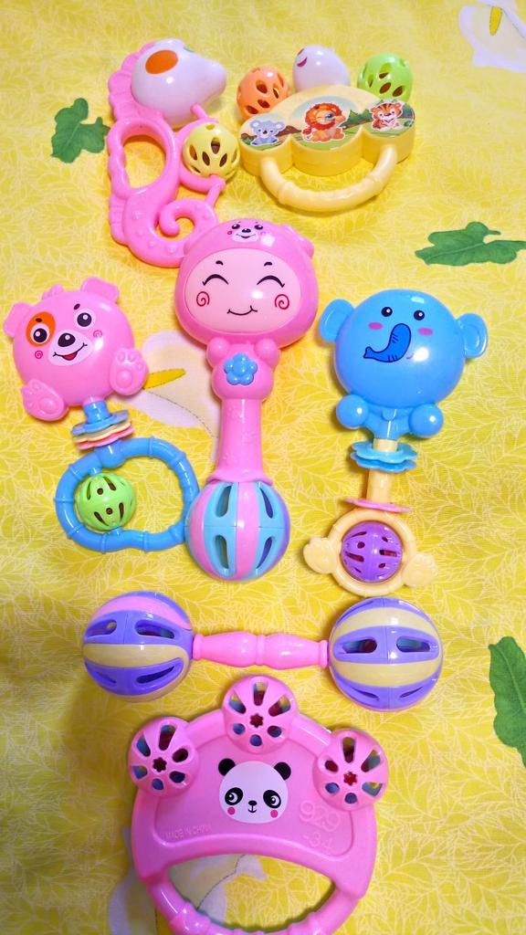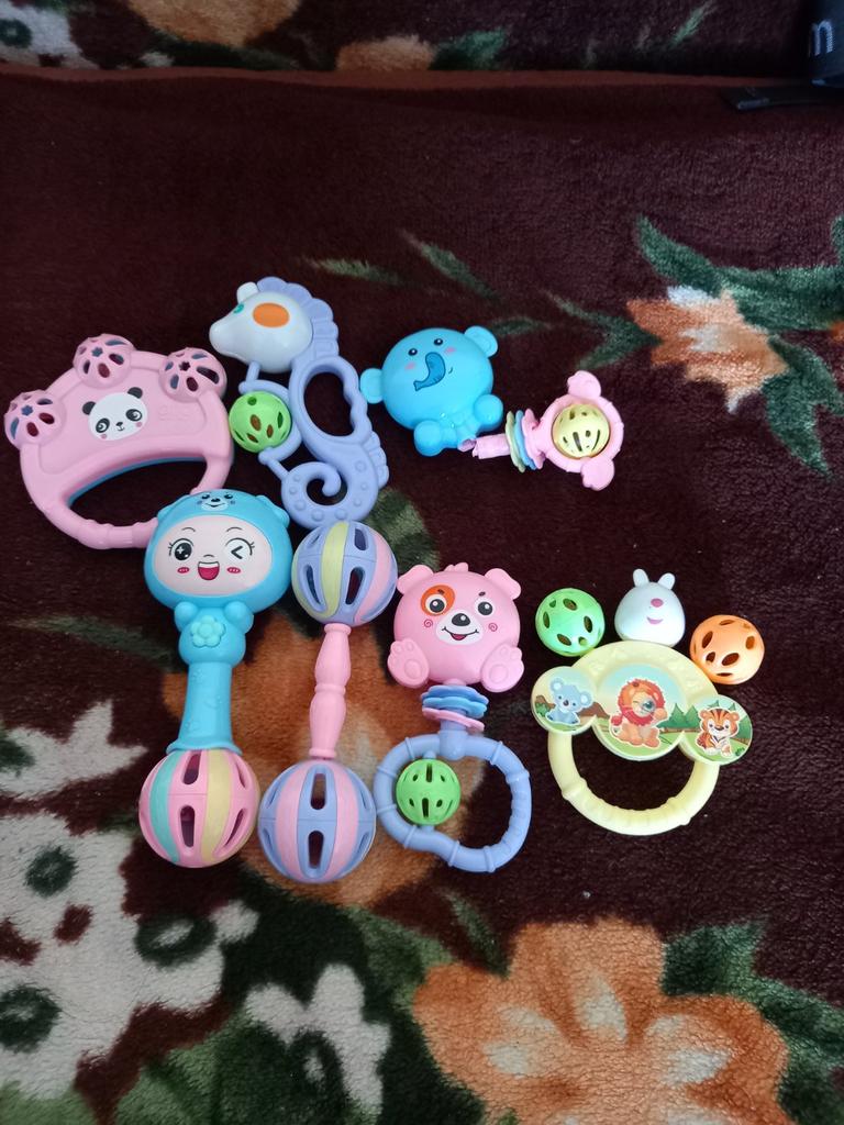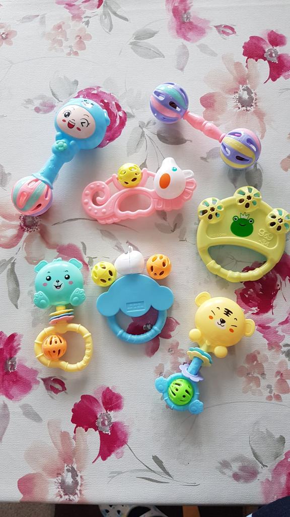 2 chrastítka jsou rozbitá (plast je prasklý) Zbytek je dobrý.