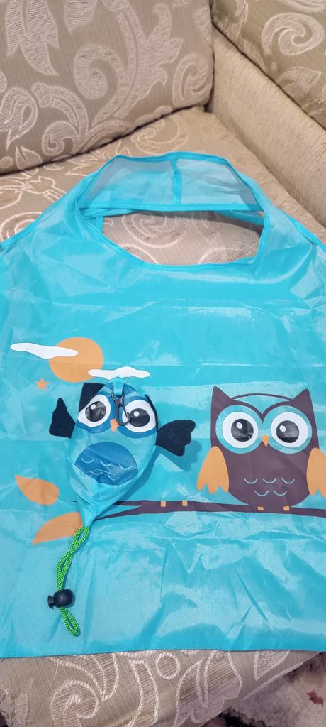 Baloney nákupní taška. Složí se do malého sáčku ve tvaru nějaké sovy nebo tak. Středně velká taška. Objednala jsem si ji v béžové barvě, ale dorazila v modré (speciálně jsem ji vybrala, aby ladila s barvou tašky), škoda, teď se nikam nehodí.