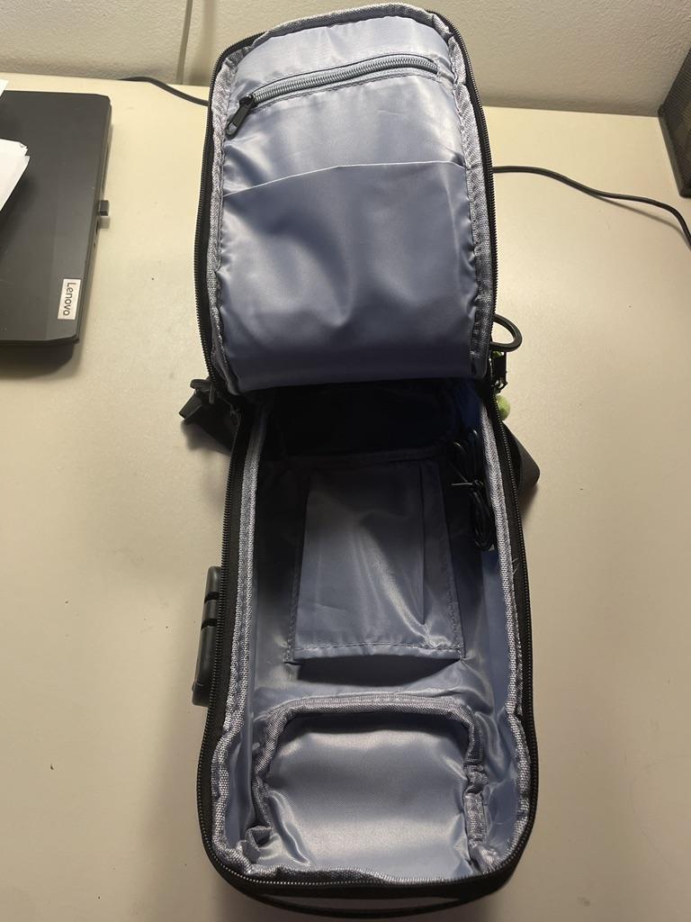 Velmi pěkné, přesně jak inzerováno, jen drobný detail v kombinaci bezpečnostního zámku, trochu se to lepí, ale stačí kombinaci pomalu vložit a je to. Pokud se chystáte do kombinace vložit nové číslo, musíte držet otevírací zámek, jako byste jej otevírali, zadat své číslo a uvolnit otvírací zámek. Visací zámek bude mít připravenou svou novou kombinaci! Objednal jsem si zelenou kamufláž a je vlastně moc hezká, myslel jsem, že je menší, ale je poněkud střední až velká. Přineste si kabel USB, abyste mohli připojit záložní baterii a nabíjet mobilní telefon nebo tablet zvenčí, aniž byste museli tašku otevírat. Jelikož je proti slabému dešti, tak jsem ho ještě nezkoušel, ale uvnitř je podšitý silným polyesterem. Horní rukojeť je stejně jako závěsný pás z kvalitního materiálu, závěsný pásek se zapíná bez běžného plastu, lze umístit na obě strany. Samotné uzávěry jsou plastové s malými zoubky, ale vypadají odolně. Uvnitř je velmi prostorný! Se třemi malými, které sdílíme, abychom chránili malé věci, jeden přichází se zavíráním. Opravdu vřele doporučuji.