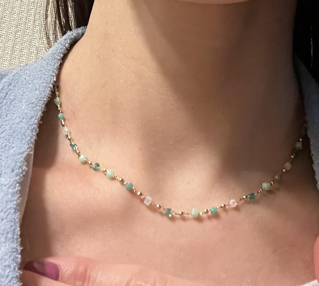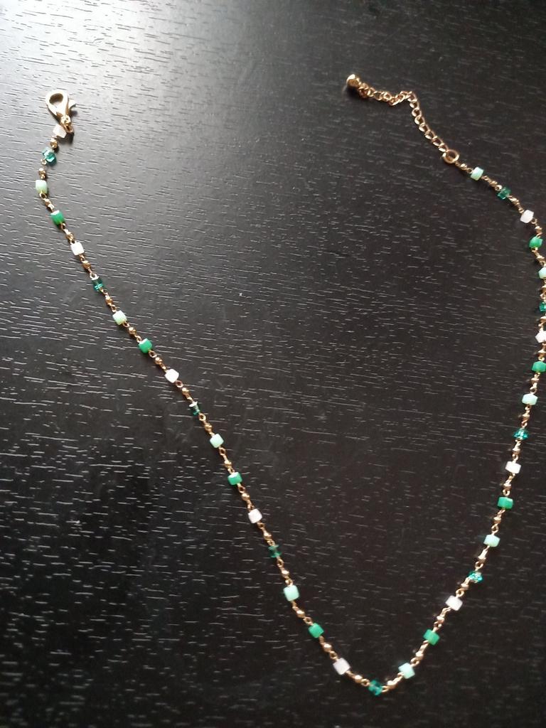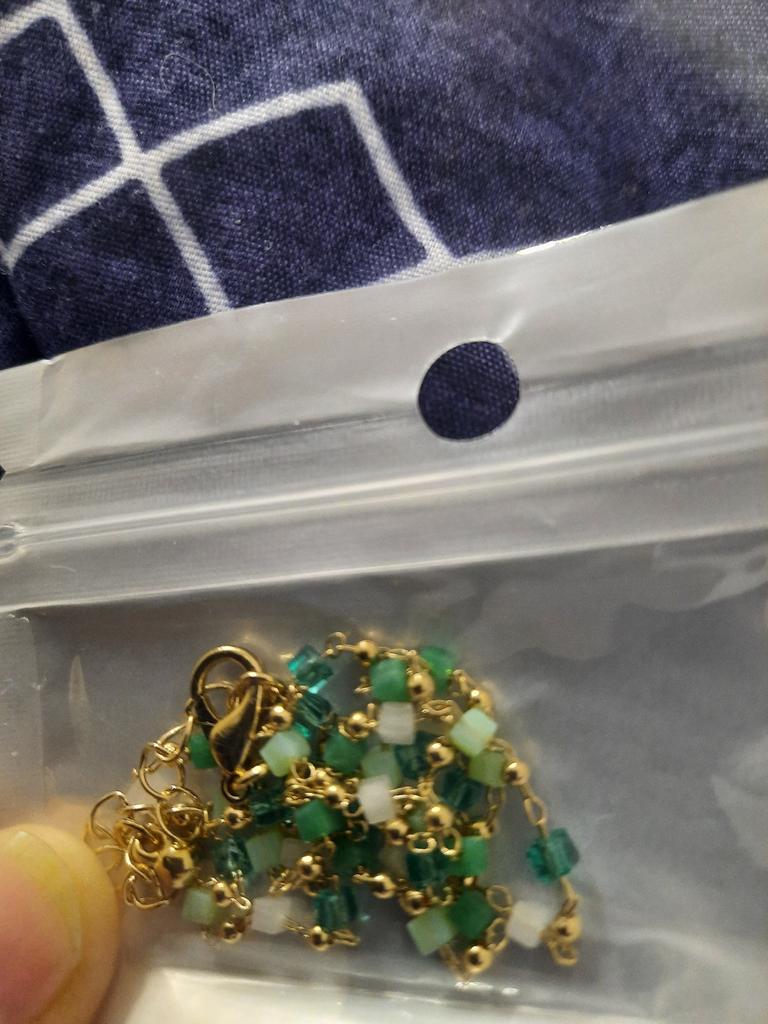 Velmi pěkný malý náhrdelník, ale spíše modrý než zelený. Zámek funguje, doporučuji zakoupit