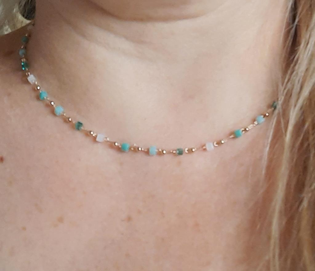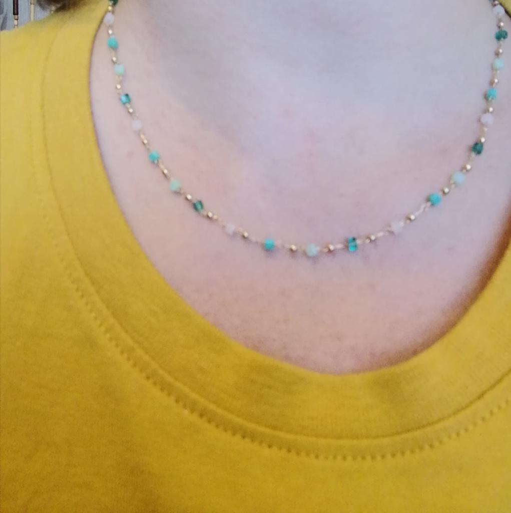 Velmi jemný, ženský a super módní náhrdelník z krásně barevných korálků. Ale pro velmi tenký krk.