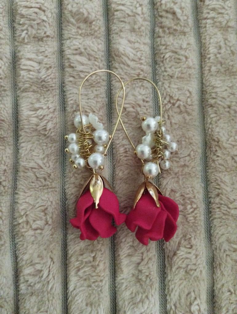 Elegantní náušnice s červenými okvětními lístky růže pro ženy Módní náušnice s přívěskem Svatební zásnubní náušnice Party šperky