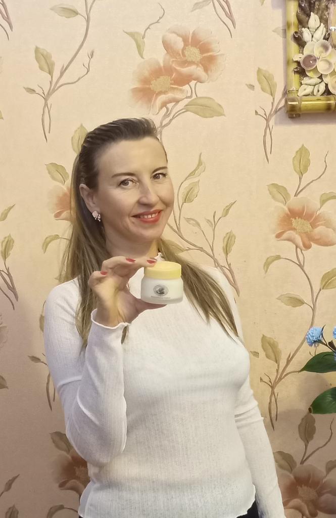 Žijeme v takové době, že fotíme a natáčíme bez světla... Berte to tedy tak, jak to je... Krabice dorazila zmačkaná, ale samotná sklenice byla neporušená. Krém je hustý, s příjemnou vůní. Hmotnost - 90 g. budu to používat. Děkujeme za produkt!🇺🇦