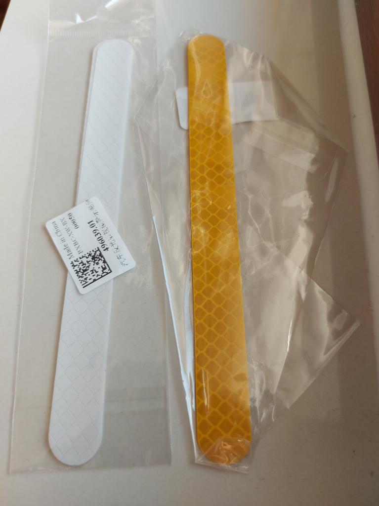 Je to velmi dobře reflexní samolepicí páska, vhodná pro použití v jiné poloze na autě.