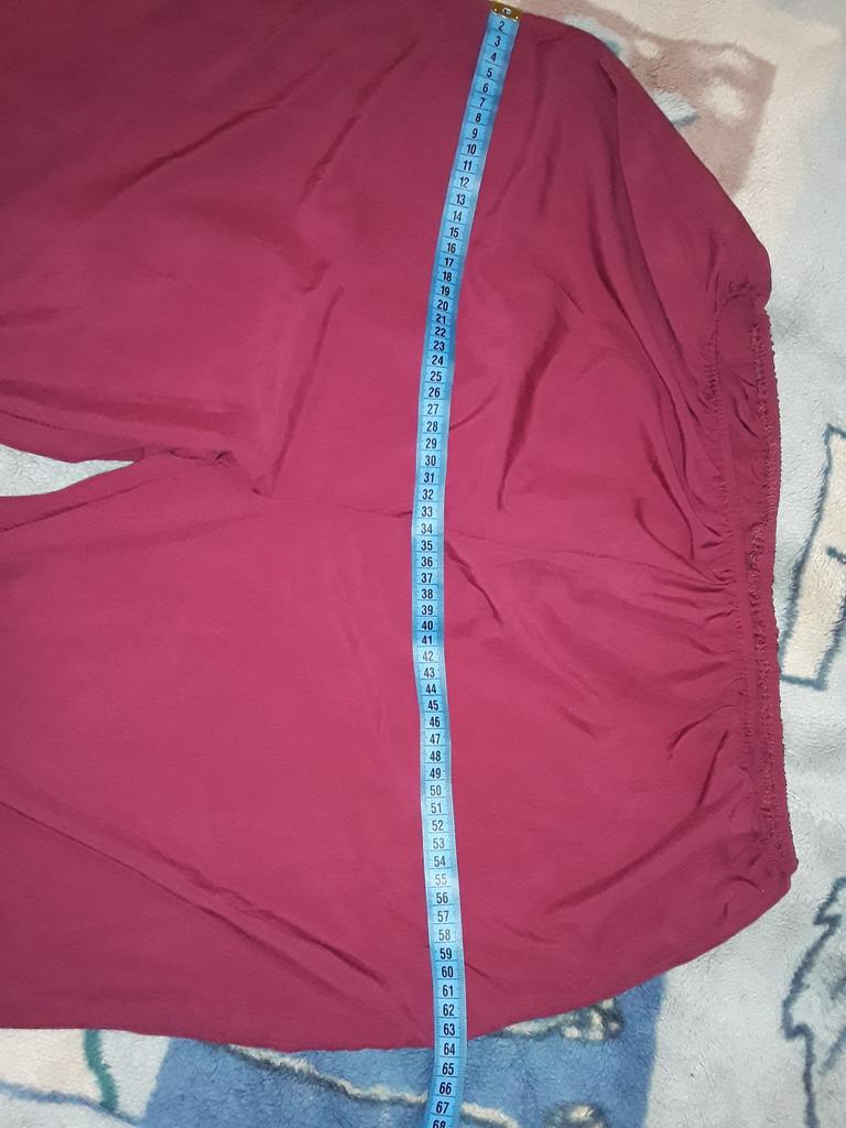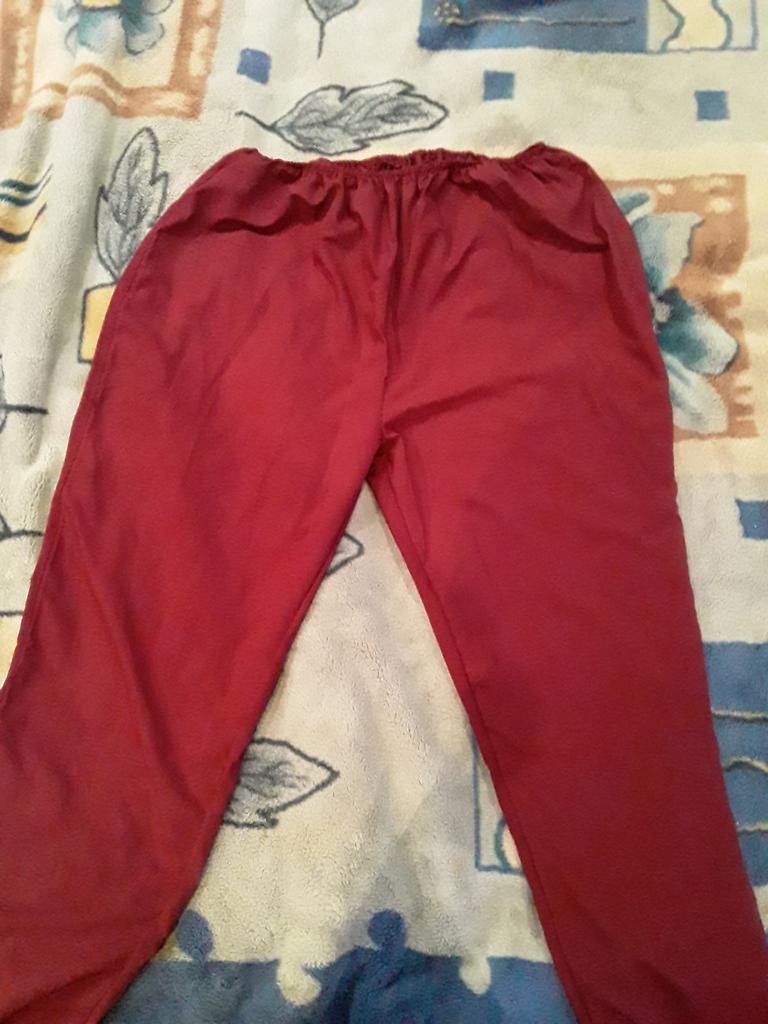 Pěkná barva, dobře ušité, v pase guma + šňůrka, bohužel upnuté a lehce malé.