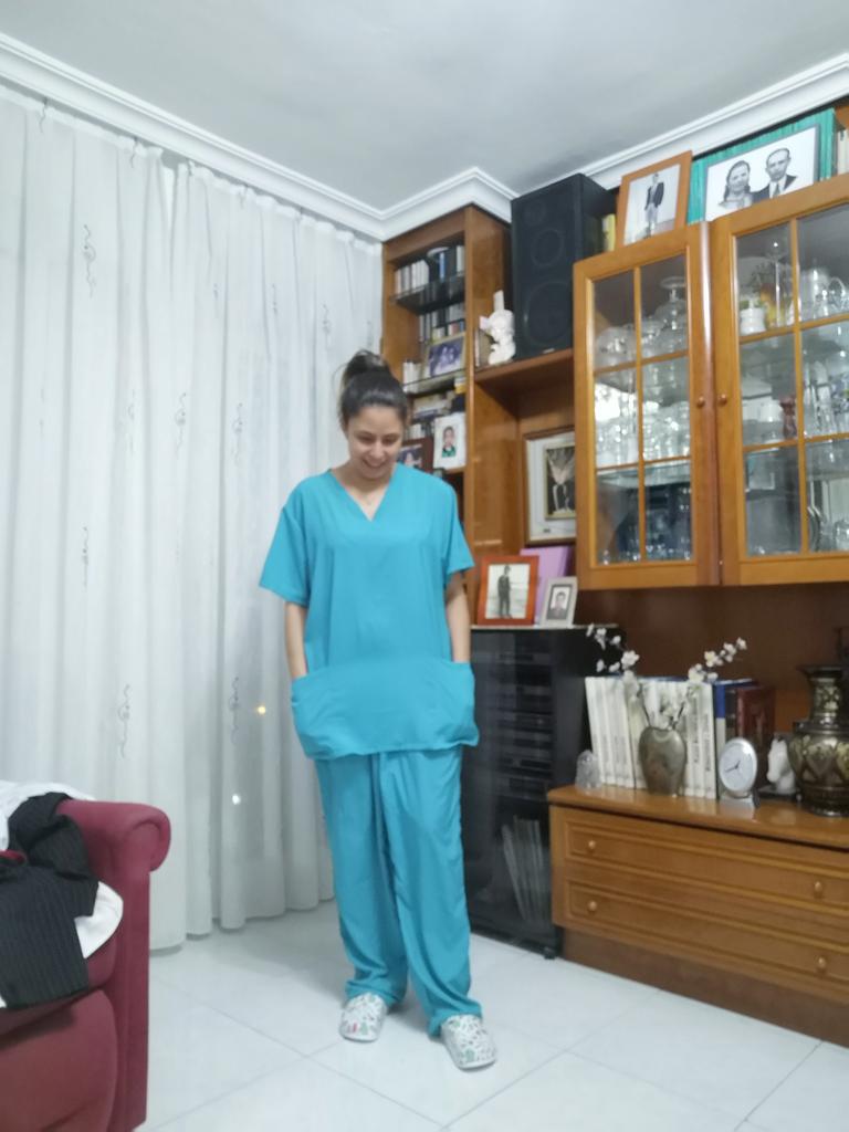 2 kusy oblečení Letní tenké pevné topy+Volné kalhoty Krátký rukáv Rychleschnoucí Oblek Nurse Suit s výstřihem do V Kojení Pracovní