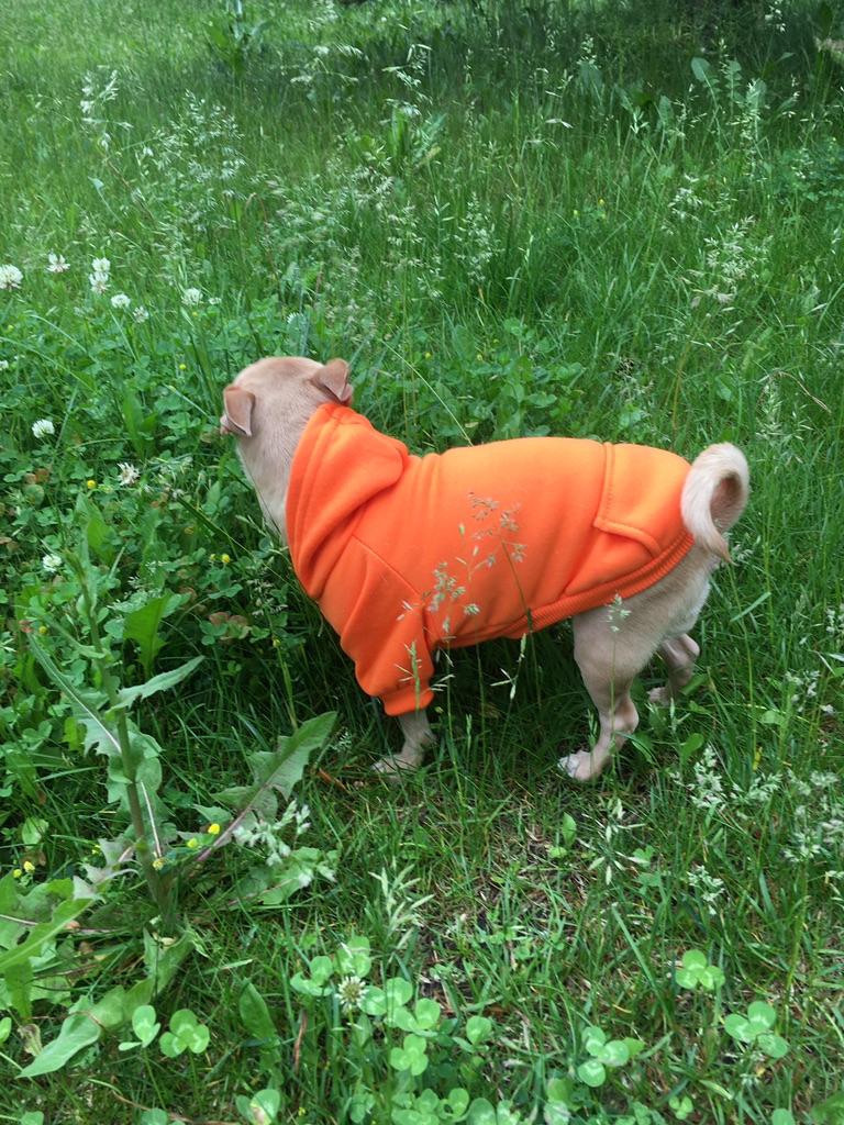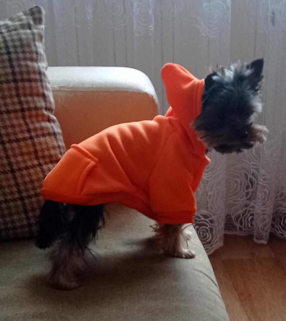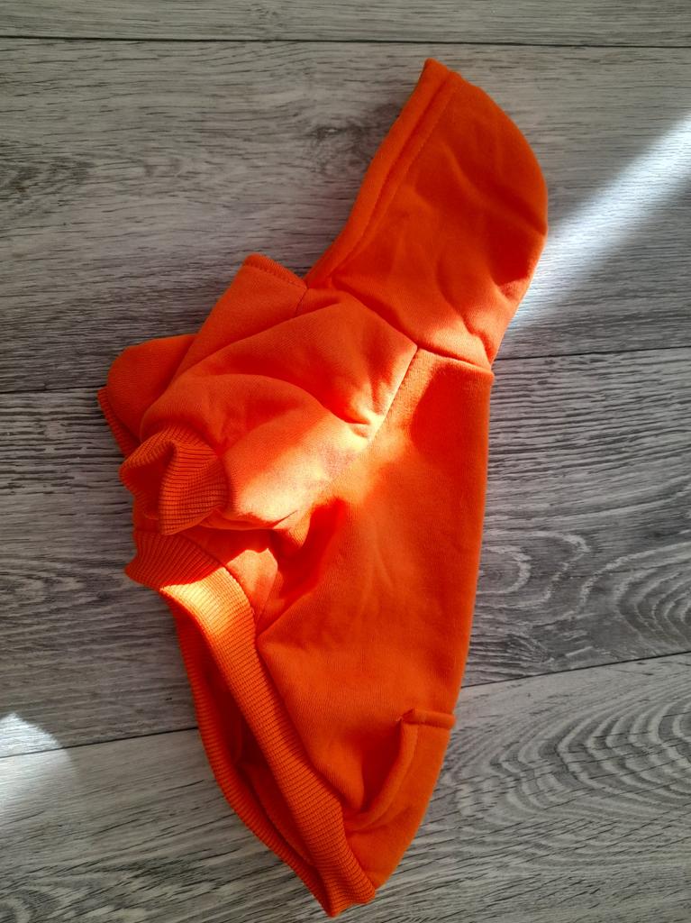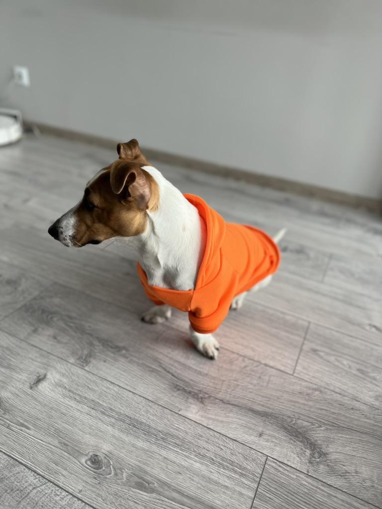 Miluju to... je to mikina pro mého malého čivava v křiklavé oranžové barvě s kapucí... moc mu to sluší... moc děkuji prodejci... a joom...