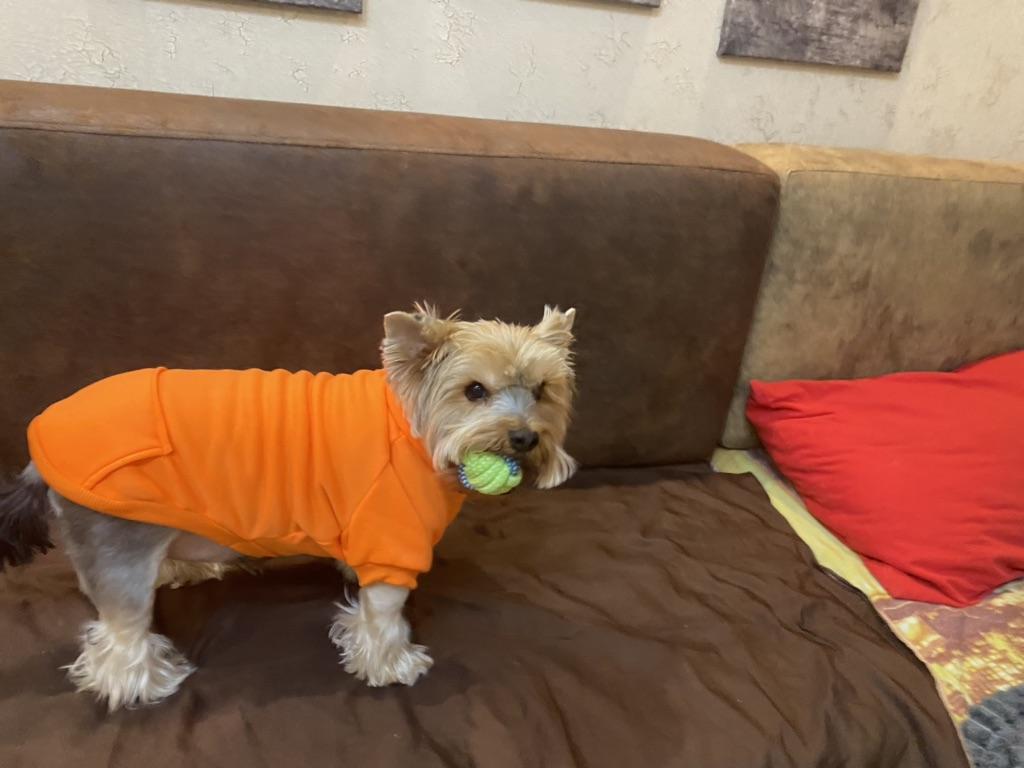 perfektně sedí na yorkshirského teriéra 6 měsíců a má skvělou barvu.