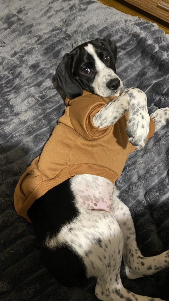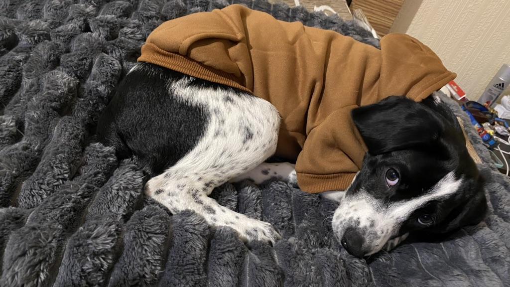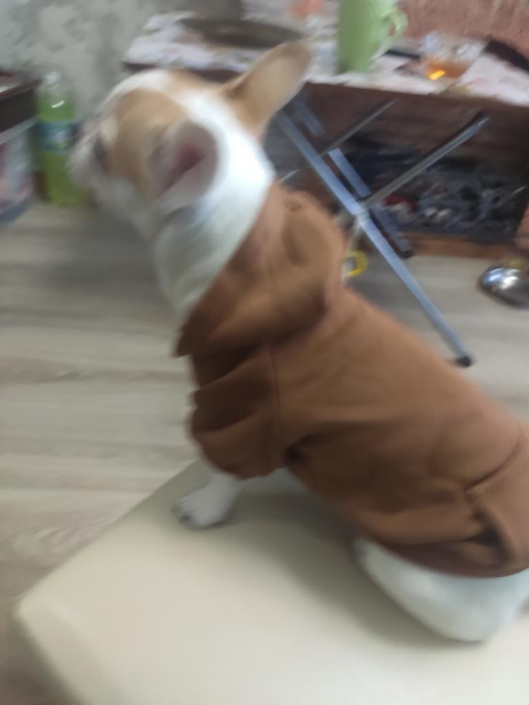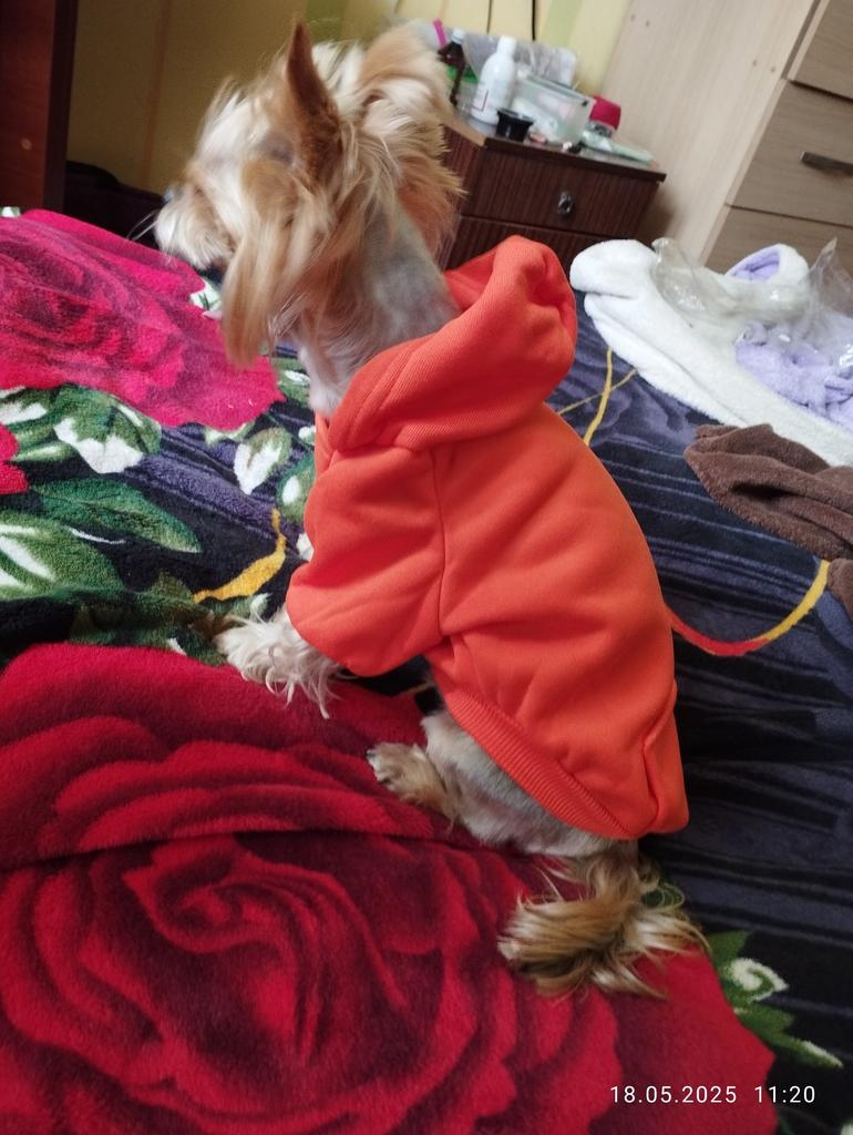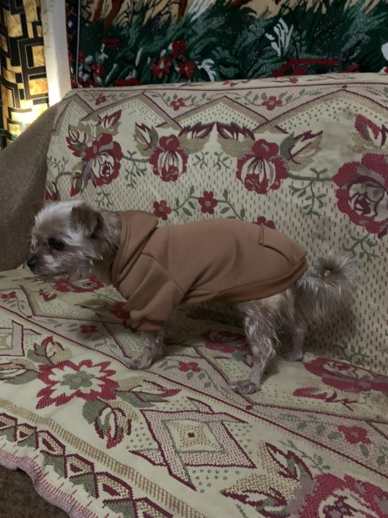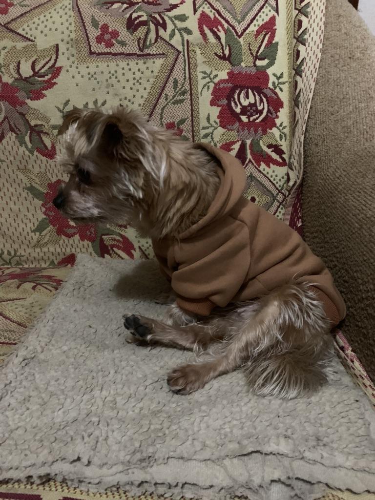 Pěkná látka, hnědá barva je lepší🔥,S bylo našemu 2kg yorkovi trochu malé🌸🥰