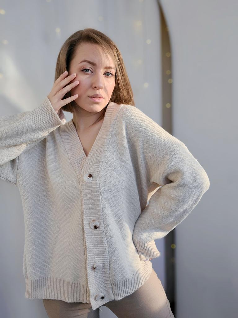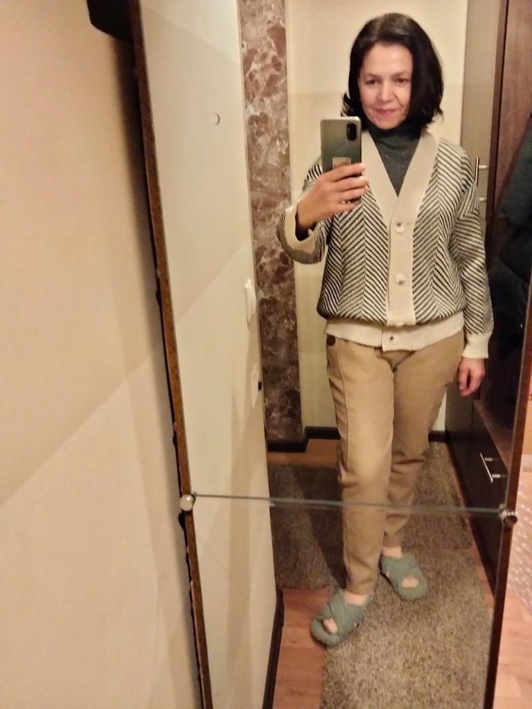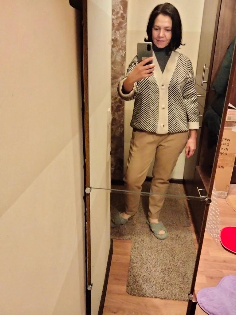Pěkný cardigan. Opravdu se mi to líbilo. Husté, teplé, výborná kvalita. Líbil se mi i styl a vzor je moc krásný. Velikost je vhodná. Moje parametry jsou ramena 39 cm, hrudník 88 cm, pas 74 cm, boky 96 cm, výška 159 cm.Jsem velmi spokojená. Dostala jsem i dárek od prodejce - náramek - pěkný. Díky prodejci a díky Joomovi.