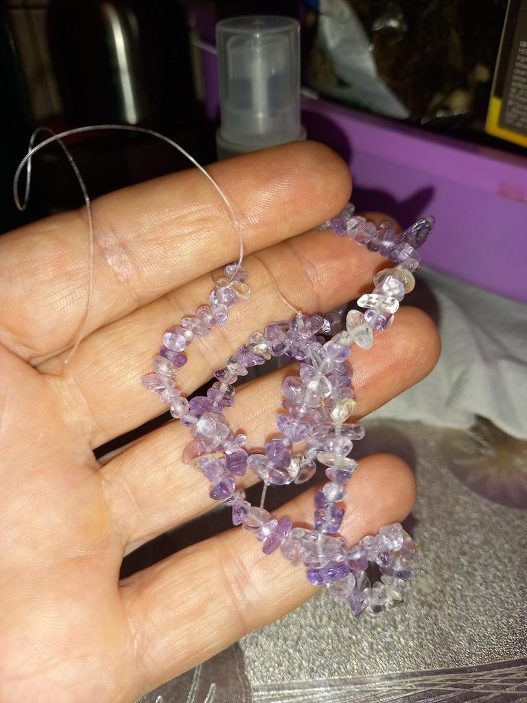 Přišly mi dva prameny světlých lila ametystových štěrkových korálků, moc se mi líbí, jsou malé, příjemné a jemné, doporučuji. Děkuji všem