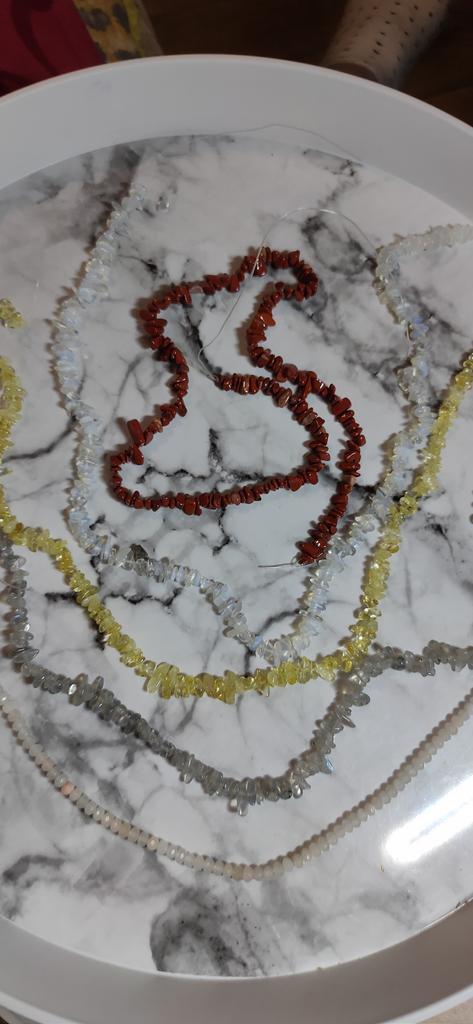 Štěrkové korálky mám z karneolu, dva prameny, líbí se mi. Děkuji všem
