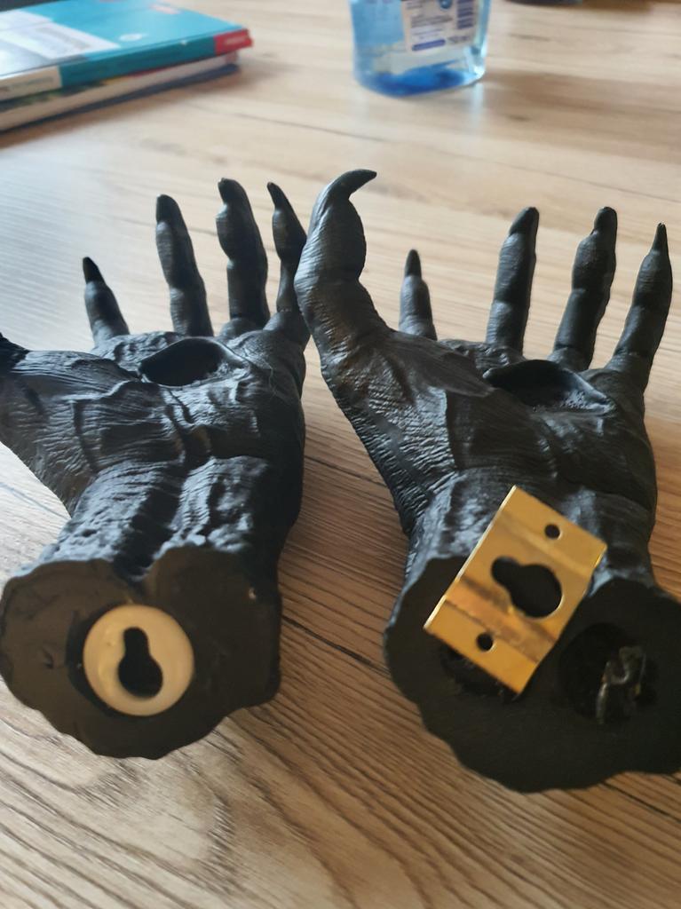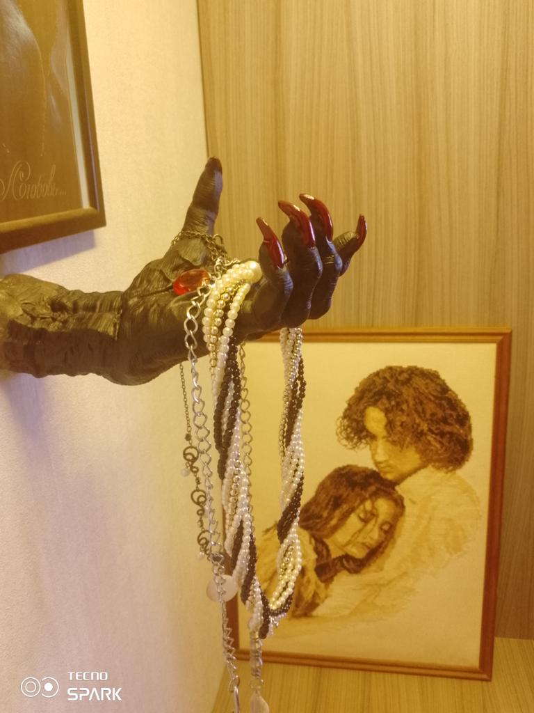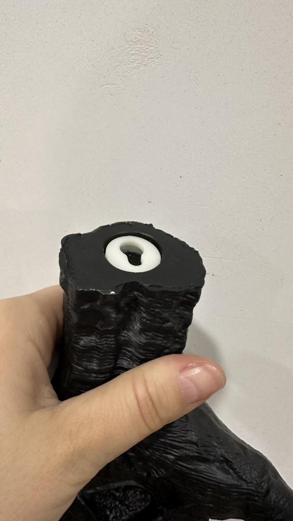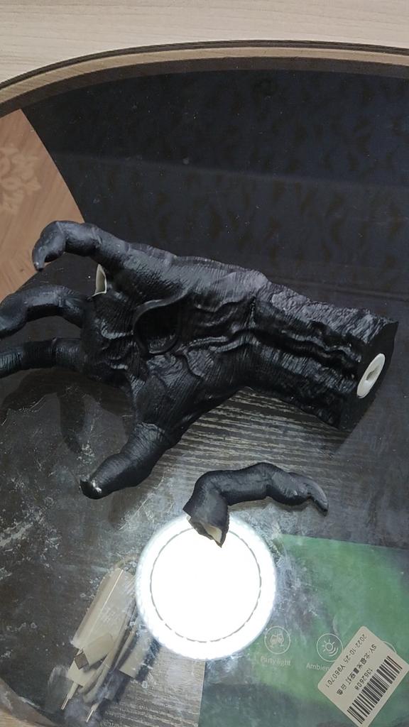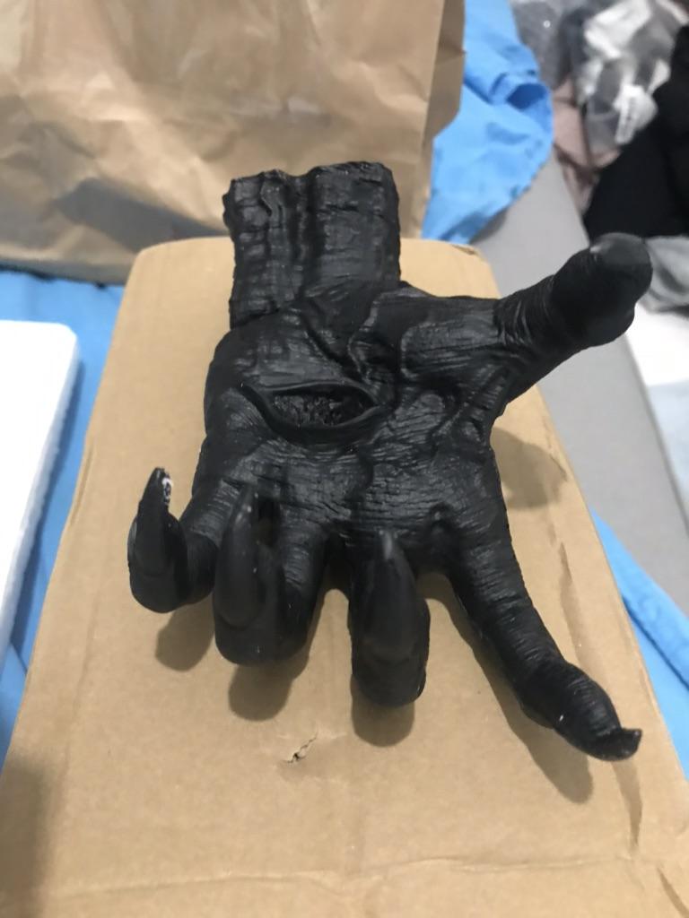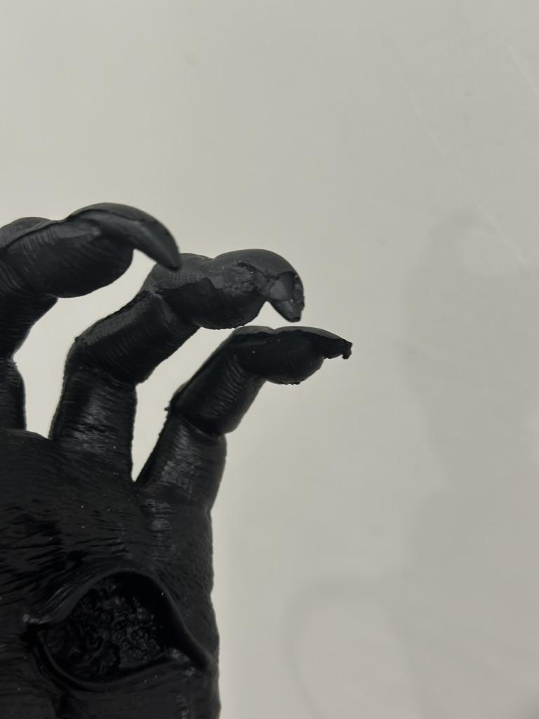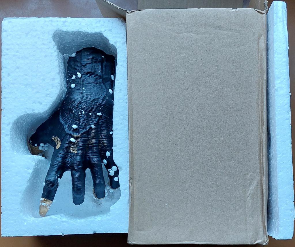 Samotná plastika je zajímavá: nehty jsou špatně vyplněné. Sada neobsahuje nic k přichycení ruky: přísavku, oboustrannou pásku nebo šroub.