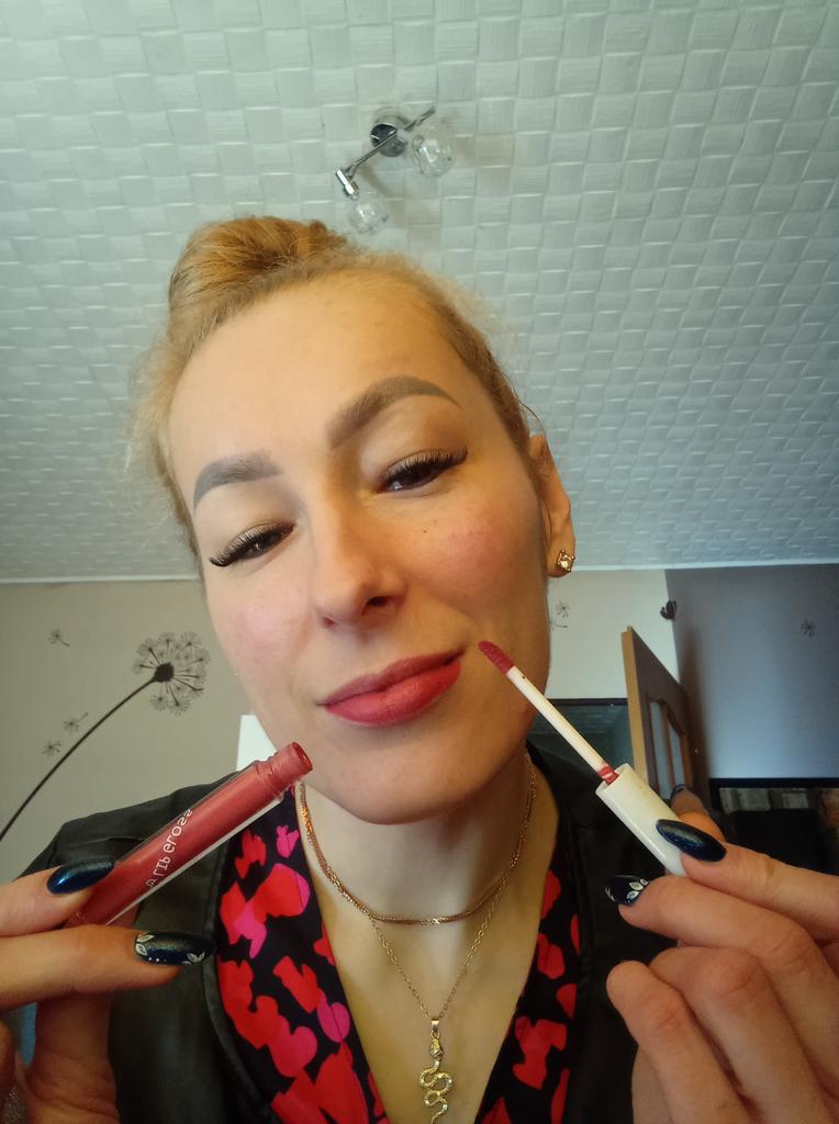 2 v 1💋 💋 uzasne lesky na rty Barevny je matujici, krasne se aplikuje a vydrzi dlouhe hodiny💋 krasne syta barva. Na barevnou rtenku muzete aplikovat bezvarvy lesk pro dokonaly usmev💋🤗