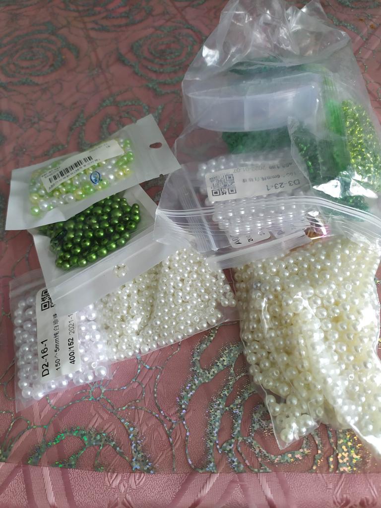 Drobné korálky, přesný počet, žádné zlomené, vše v pořádku.