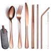 Zlatá sada přenosného jídelního nádobí Jedinečný design Cestovní opakovaně použitelné Camping Stříbrné příbory Sada nádobí Sada s rovným brčkem 215/12/6