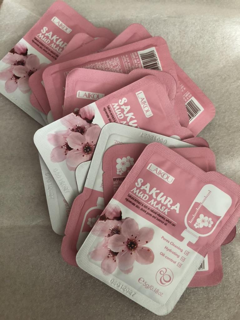 LAIKOU Sakura maska bahenní osvěžující hloubkové čištění bělící maska na zmenšení pórů Produkty péče o pleť obličeje